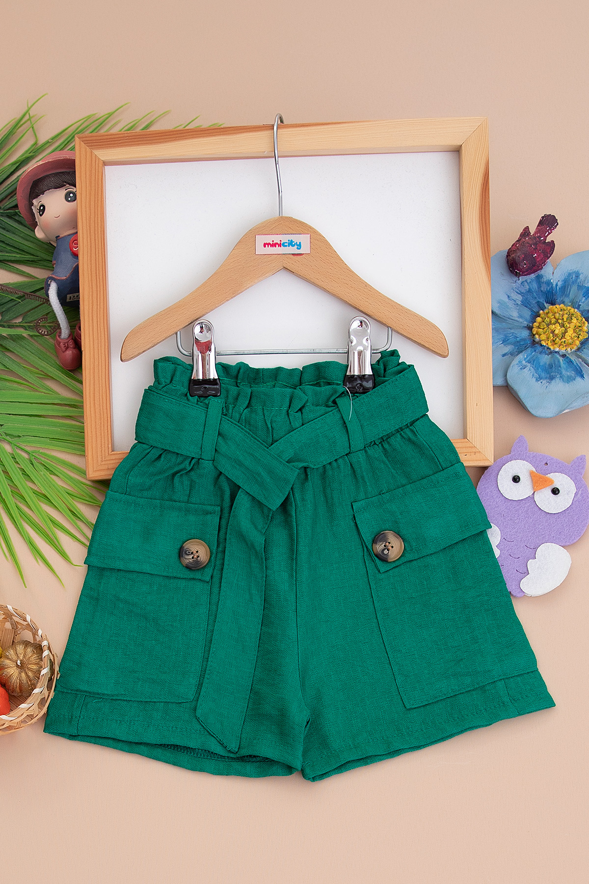 Kız Çocuk Organize Keten Şort (3-8 Yaş)