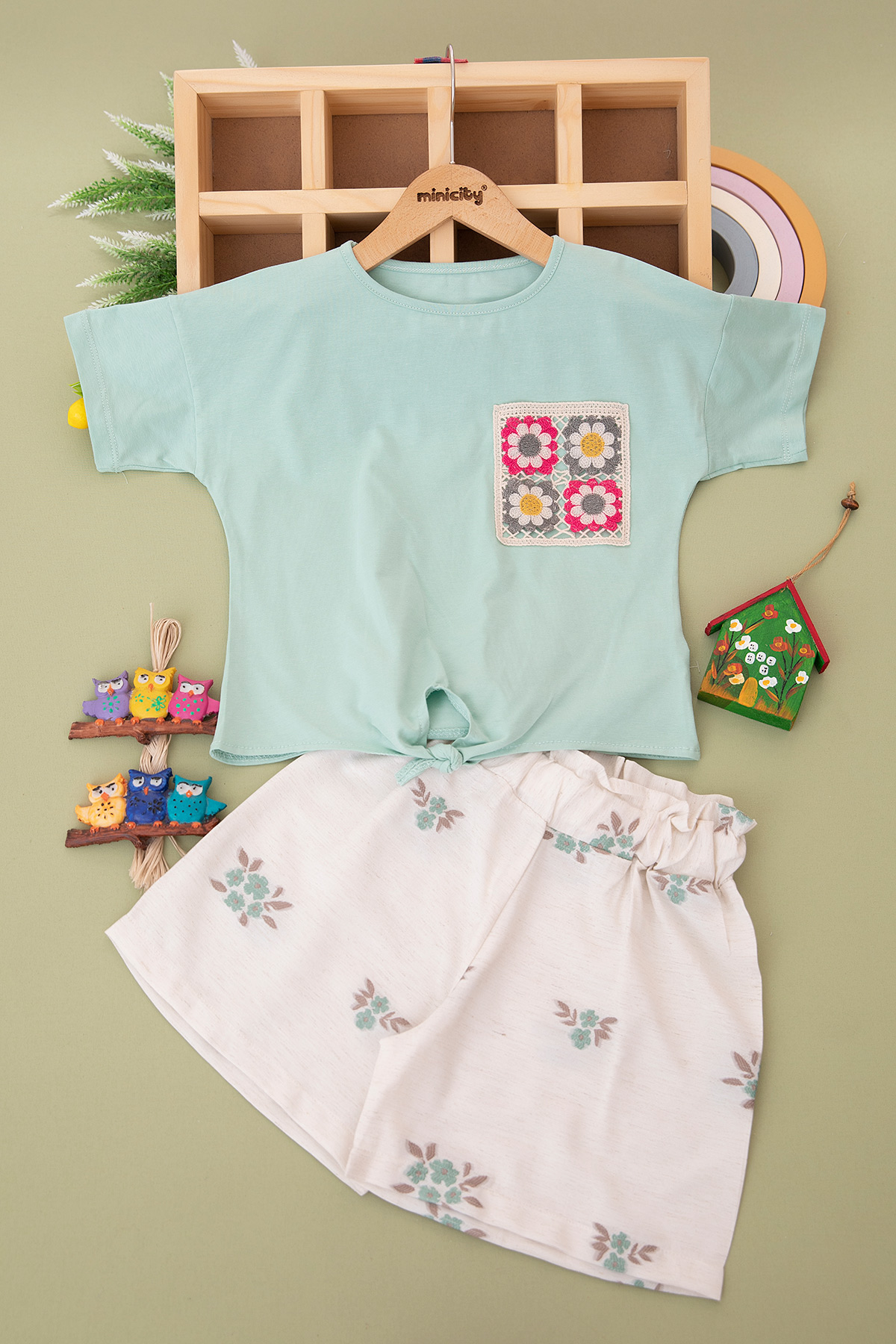 Kız Çocuk Örgü Cepli Şortlu Takım - 24381 (7-10 Yaş)