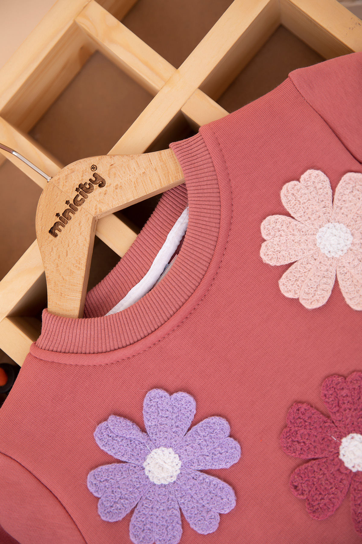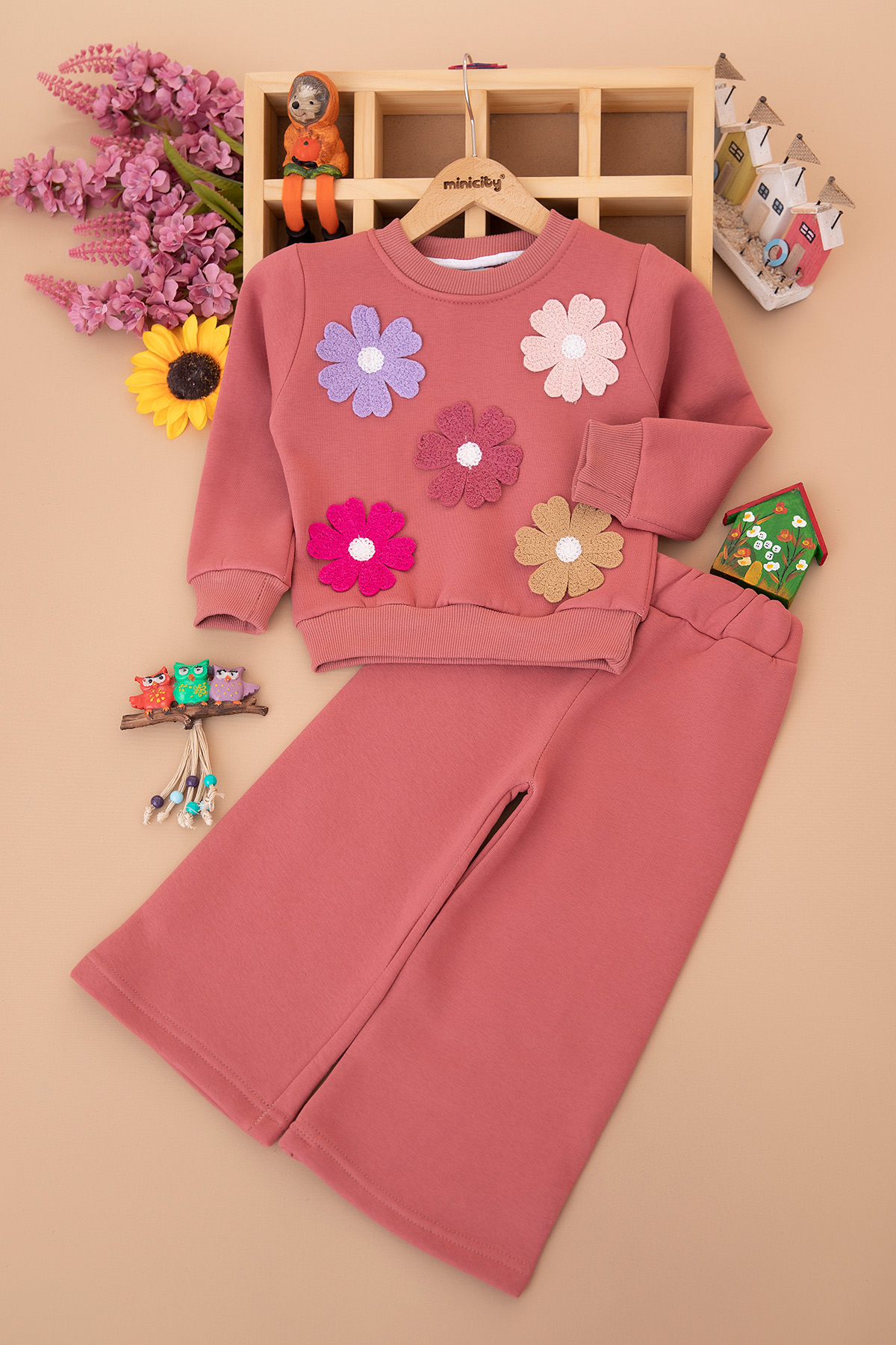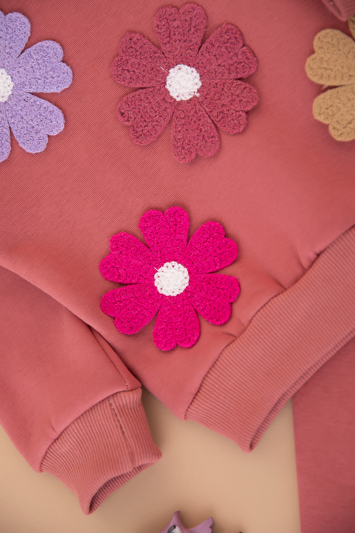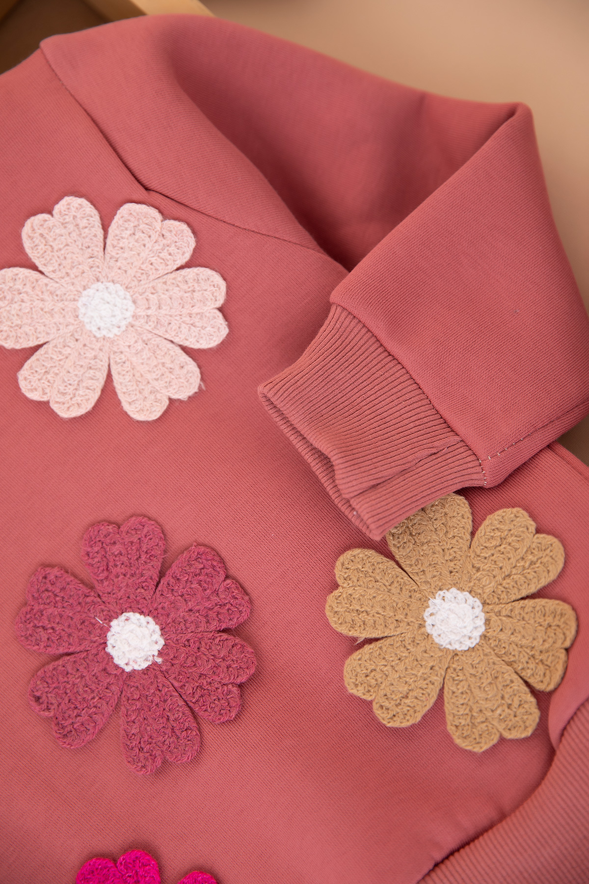 Kız Çocuk Örgü Çiçek Aksesuarlı Üçip Takım (2-10 Yaş)