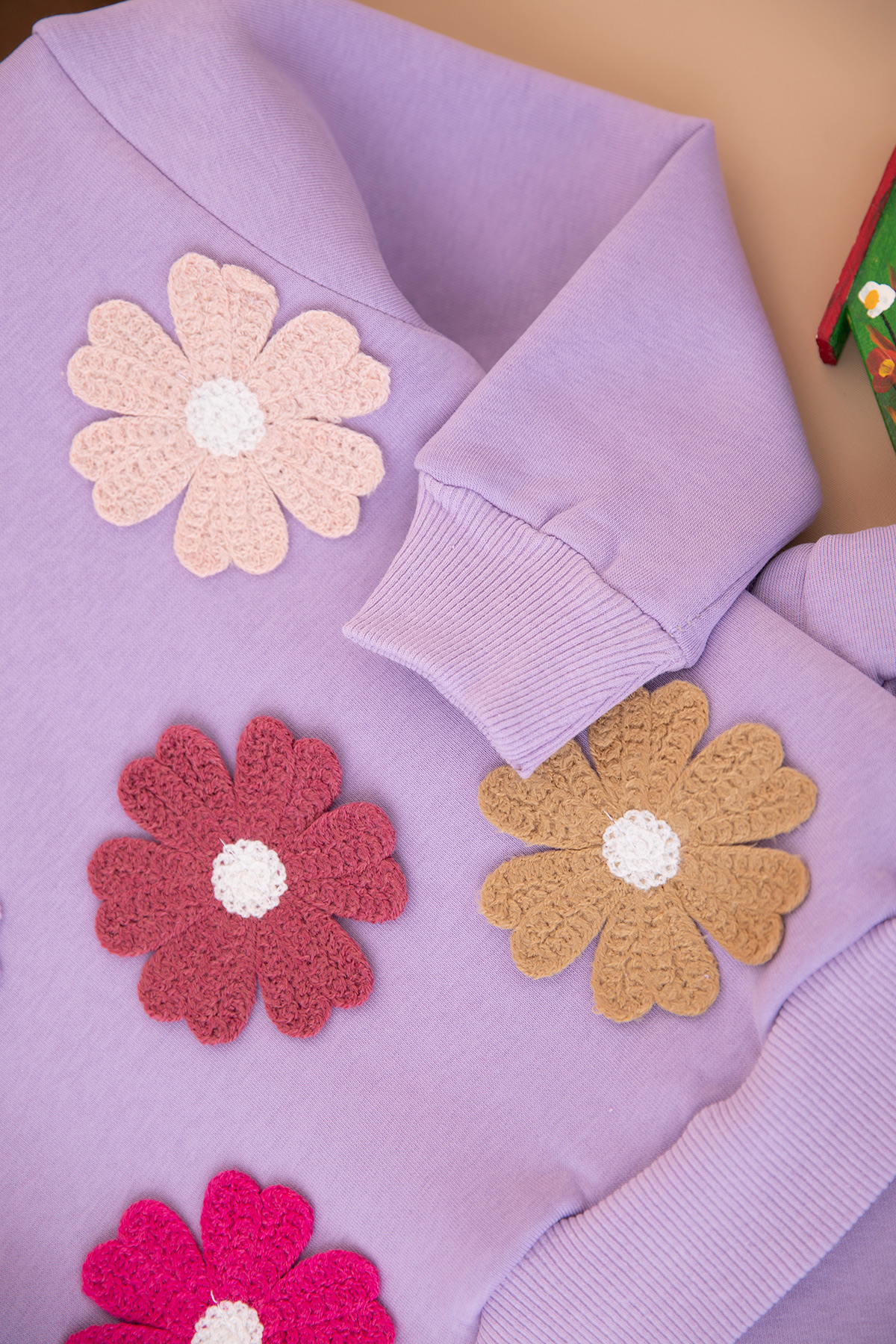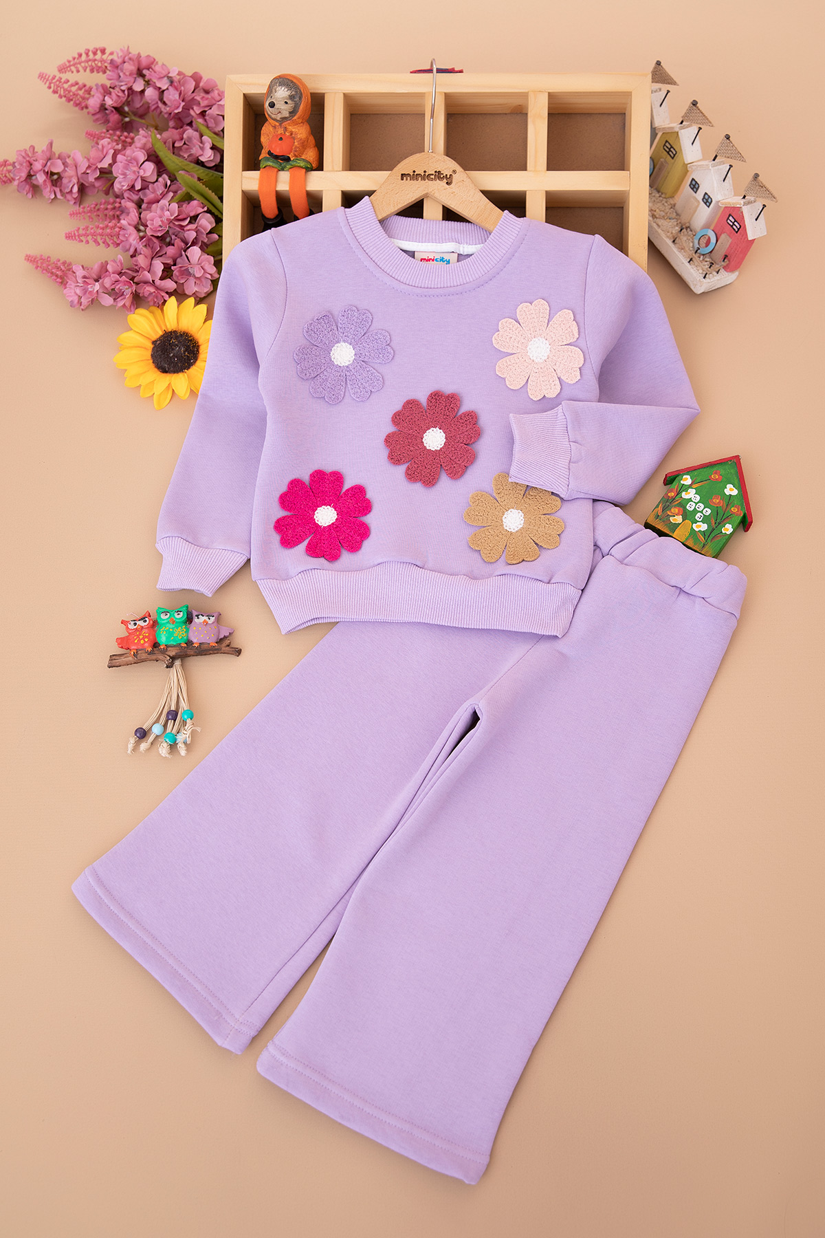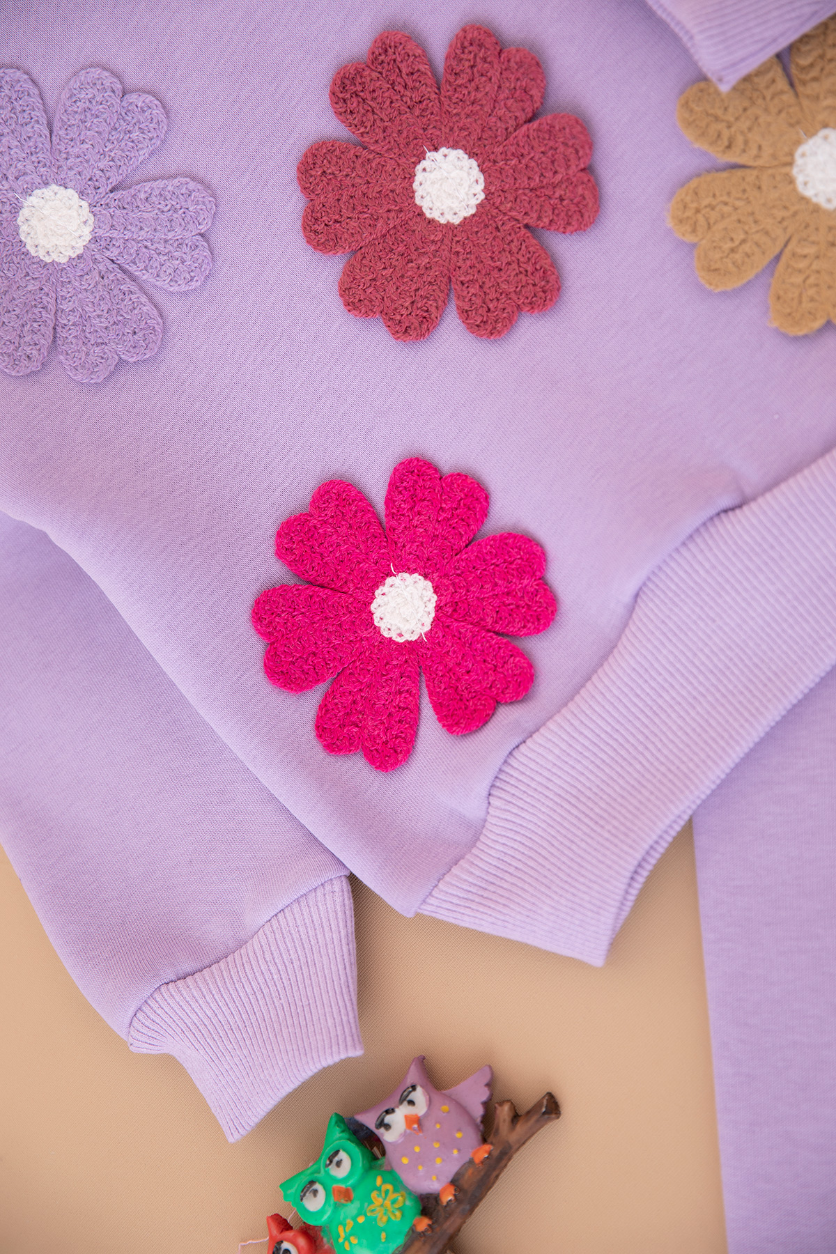 Kız Çocuk Örgü Çiçek Aksesuarlı Üçip Takım (2-10 Yaş)