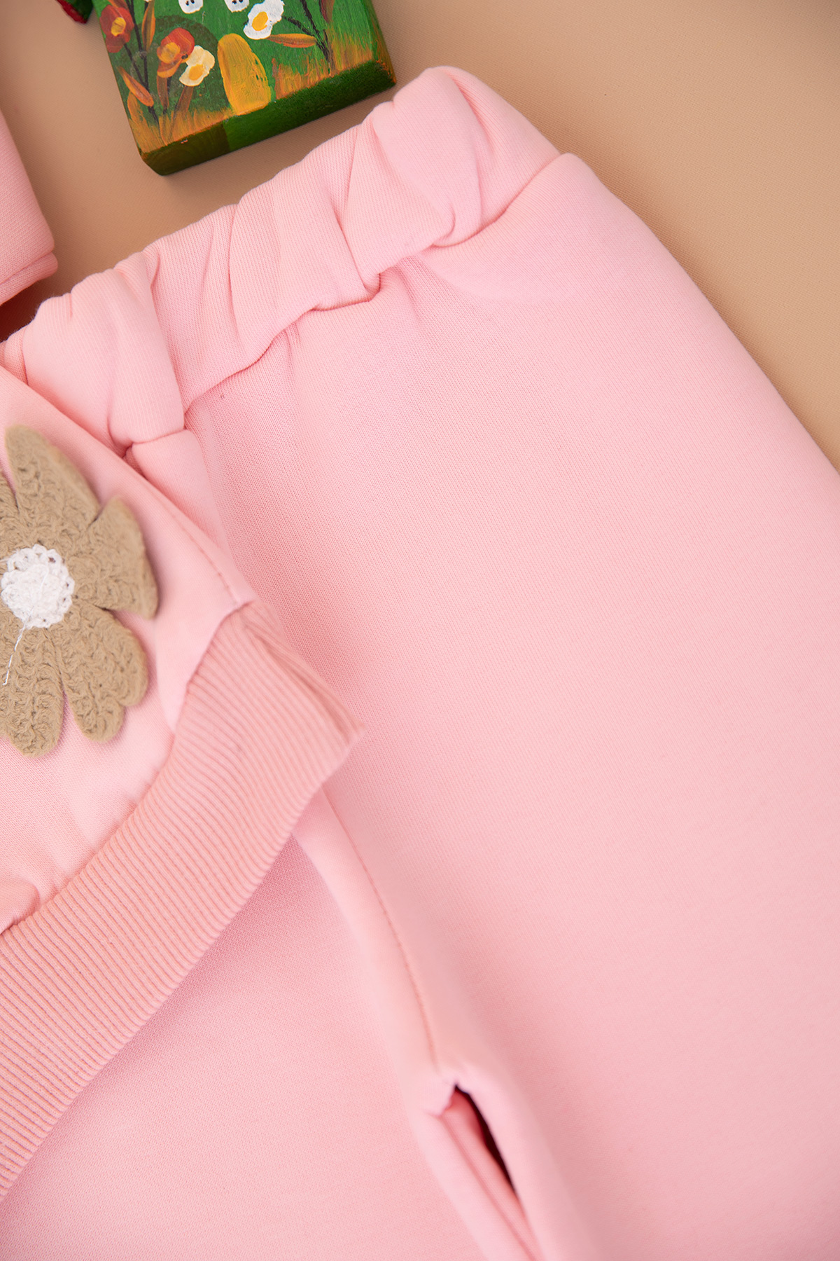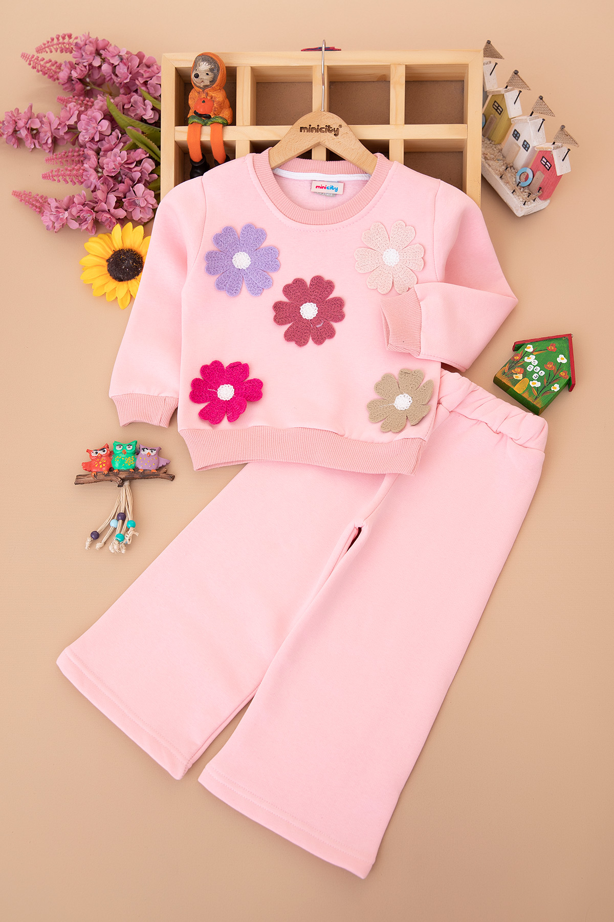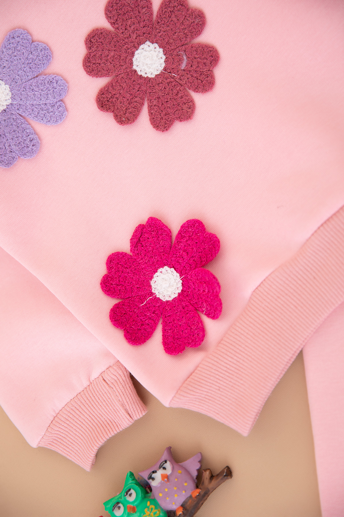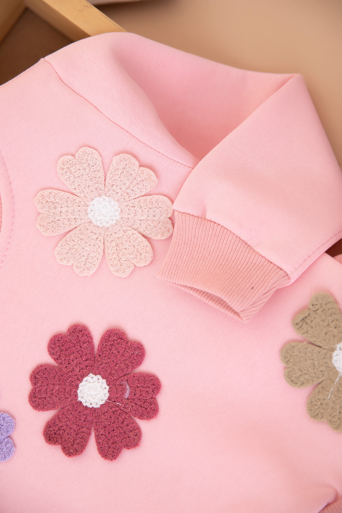 Kız Çocuk Örgü Çiçek Aksesuarlı Üçip Takım (2-10 Yaş)