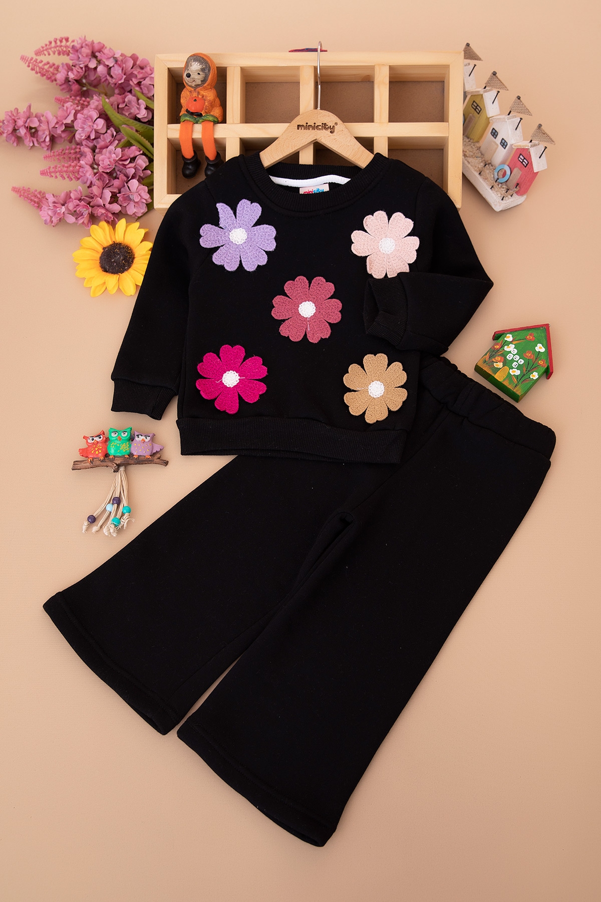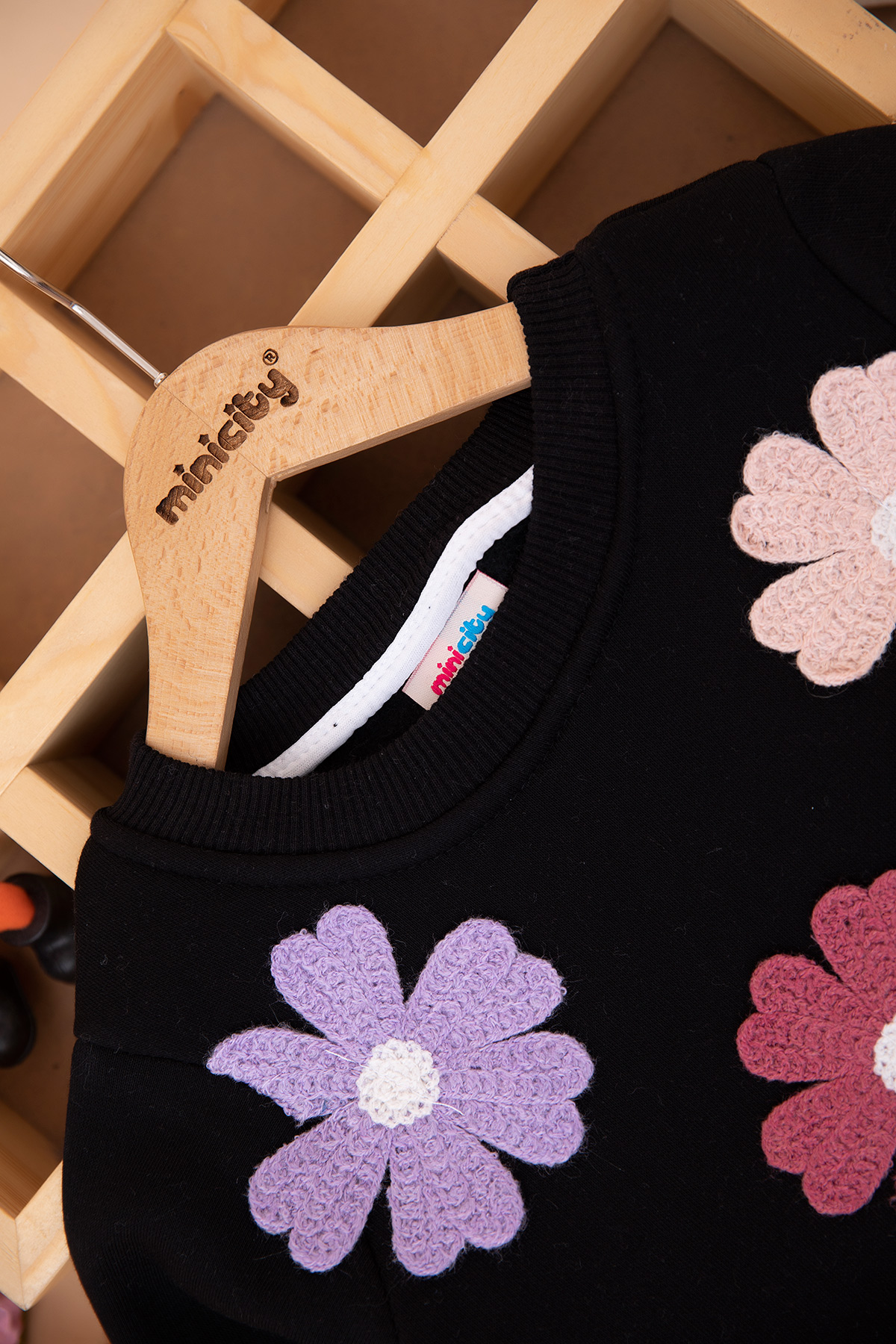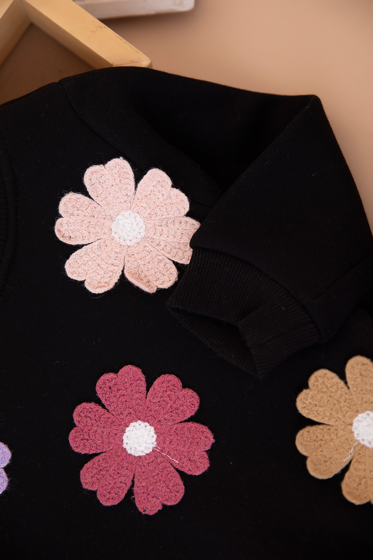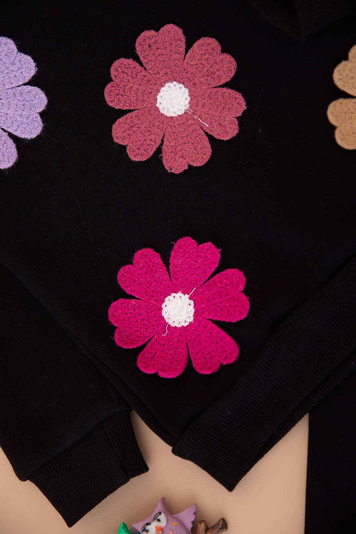 Kız Çocuk Örgü Çiçek Aksesuarlı Üçip Takım (2-10 Yaş)