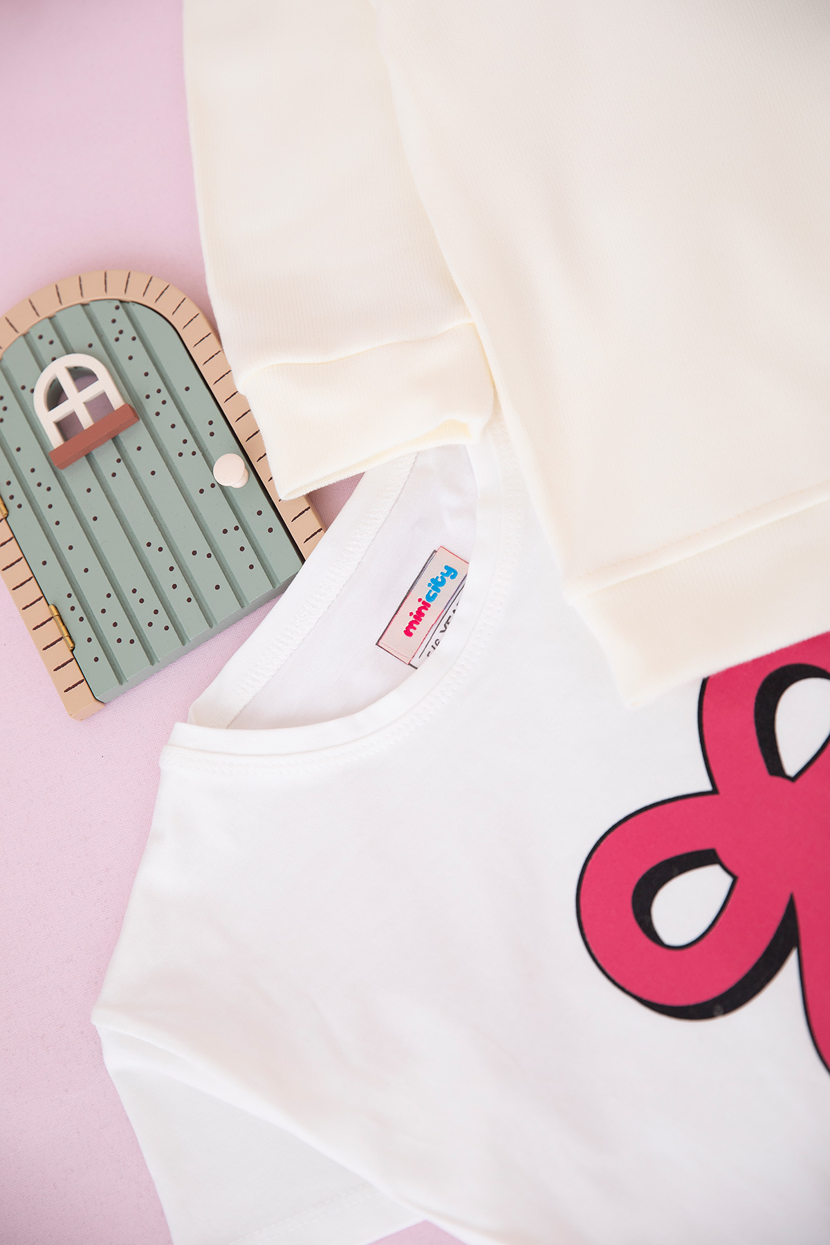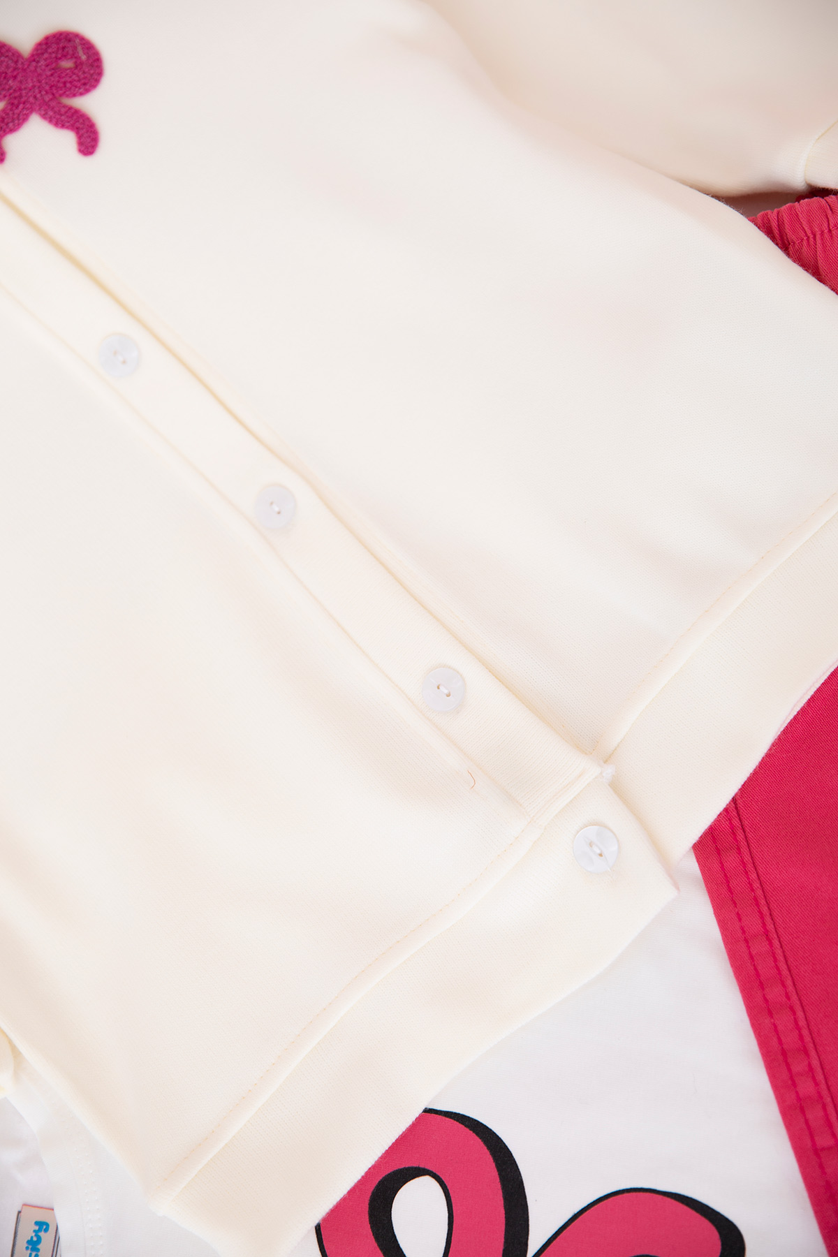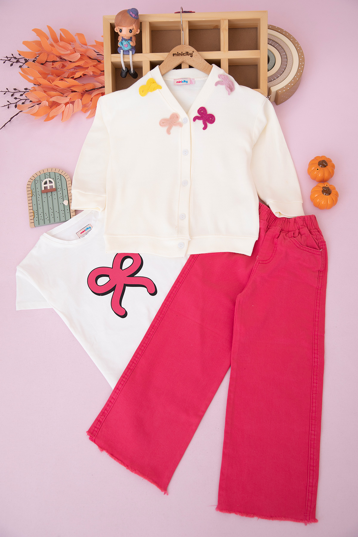 Kız Çocuk Örgü Fiyonklu Hırkalı Takım - 70665 (5-12 Yaş)