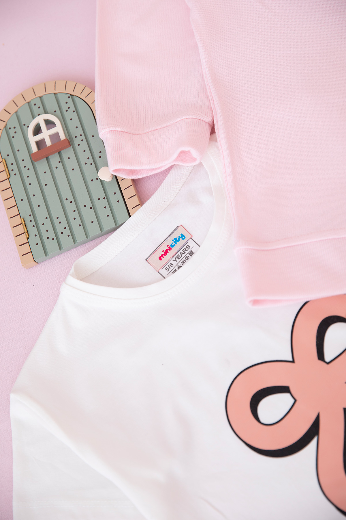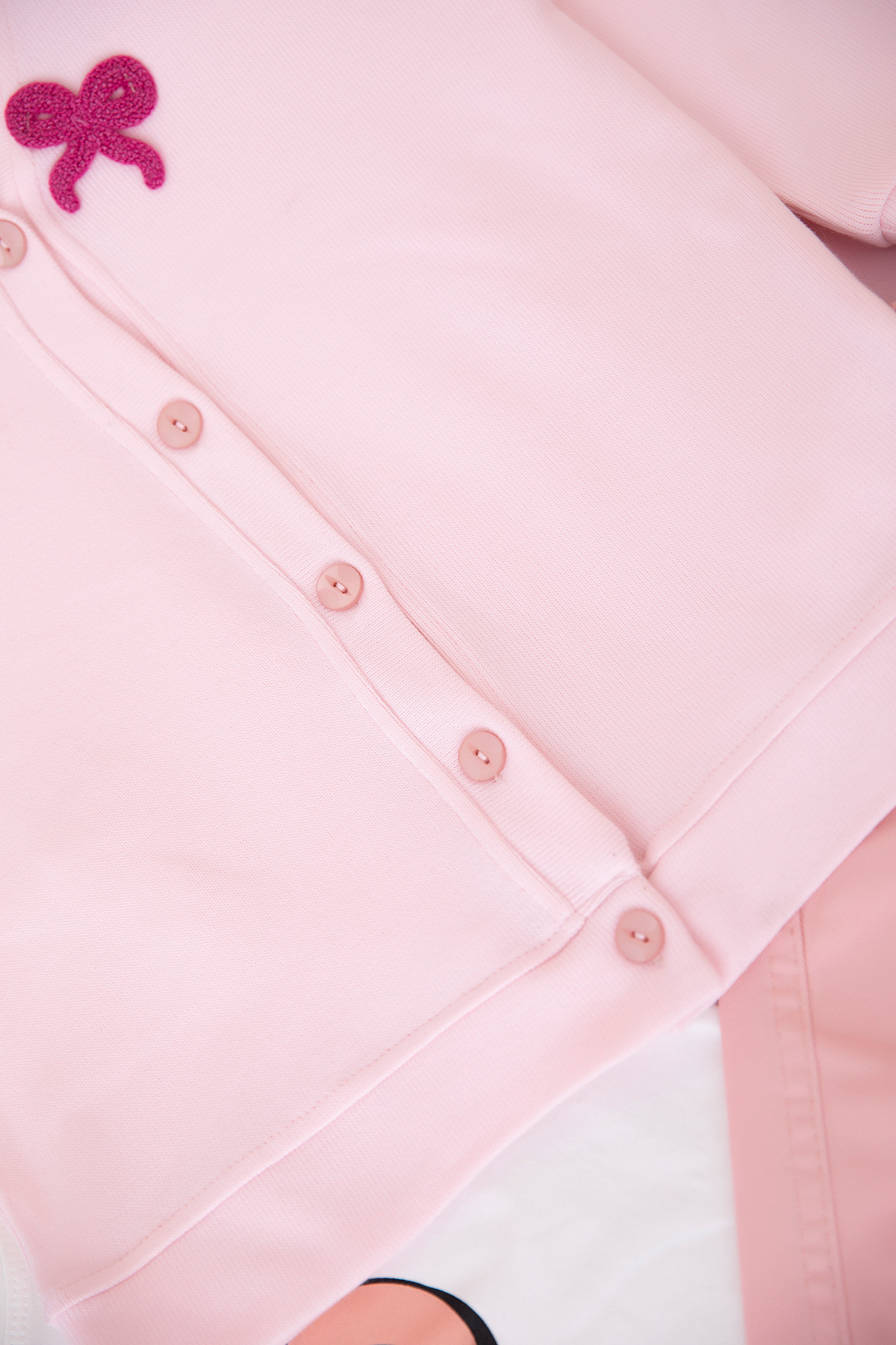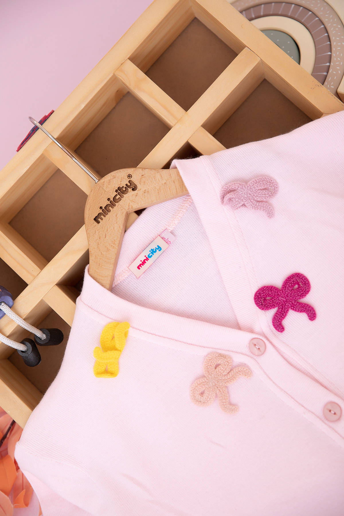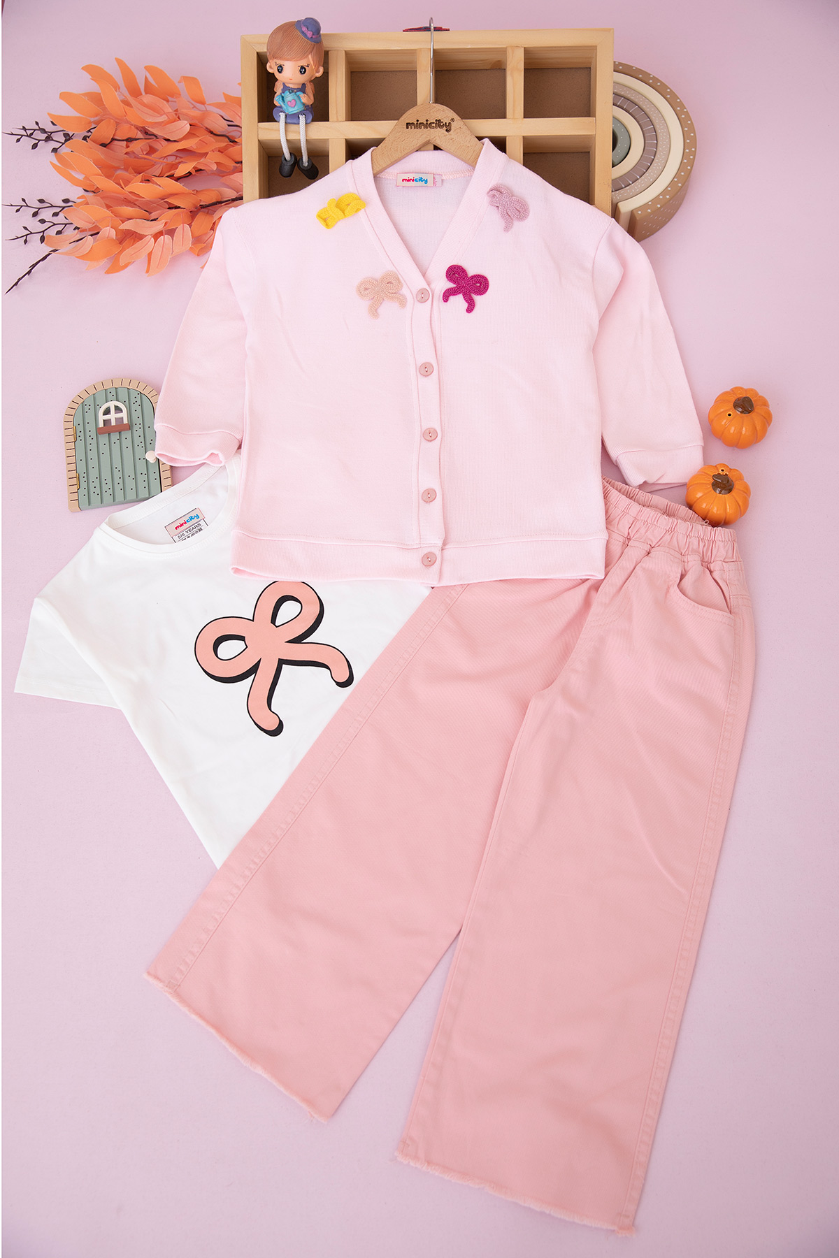 Kız Çocuk Örgü Fiyonklu Hırkalı Takım - 70665 (5-12 Yaş)