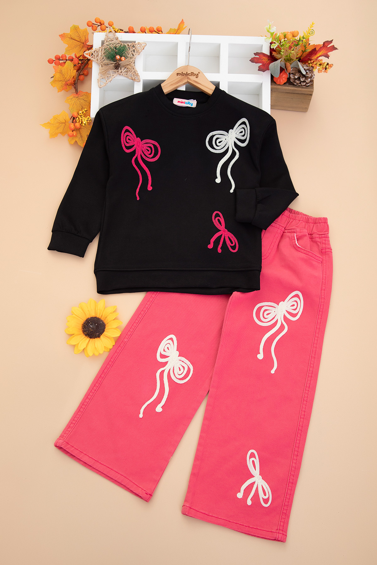 Kız Çocuk Örgü Fiyonklu Takım - 70415 (5-12 Yaş)