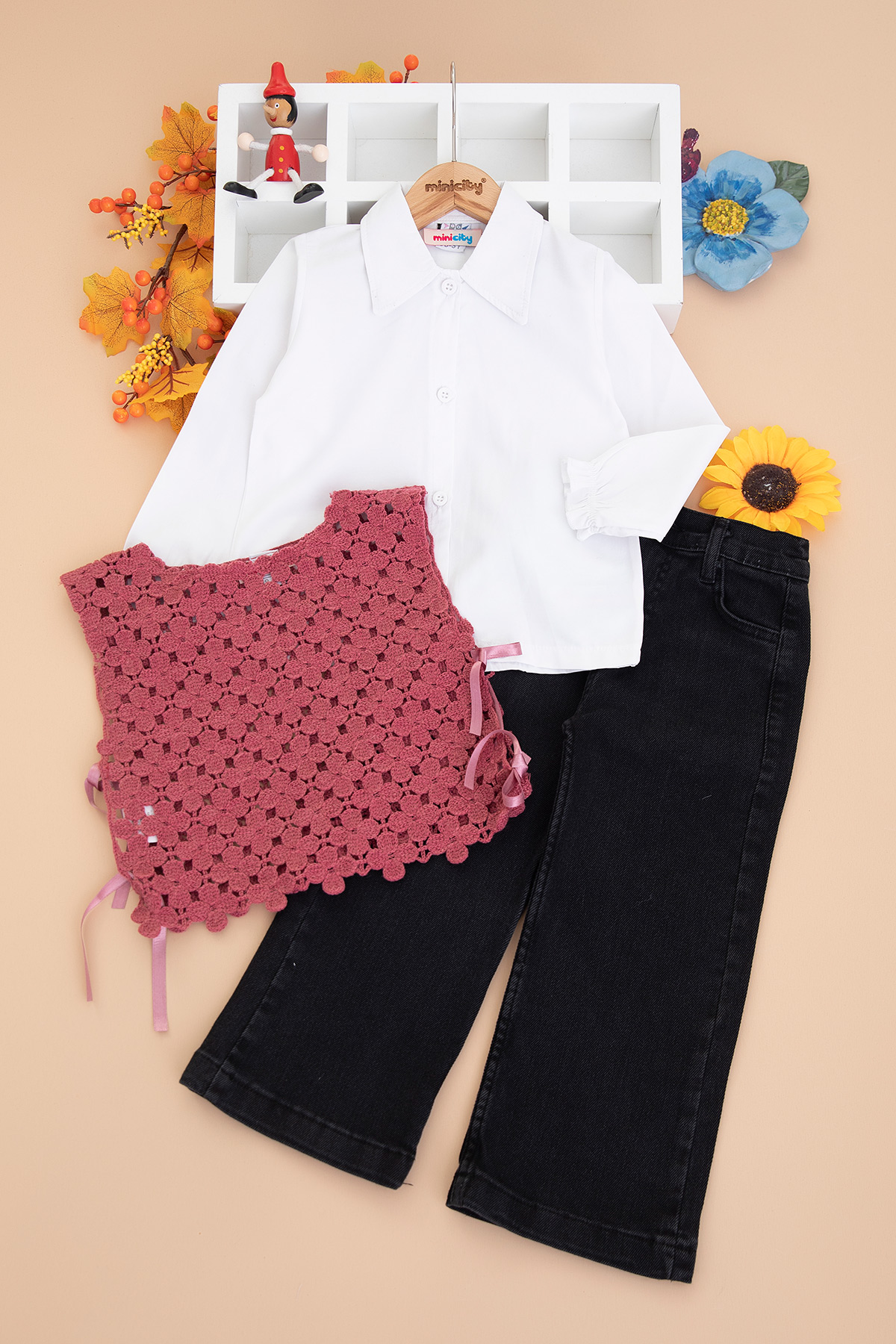 Kız Çocuk Örgü Süveterli Pantolon Takım - 26151 (3-6 Yaş)