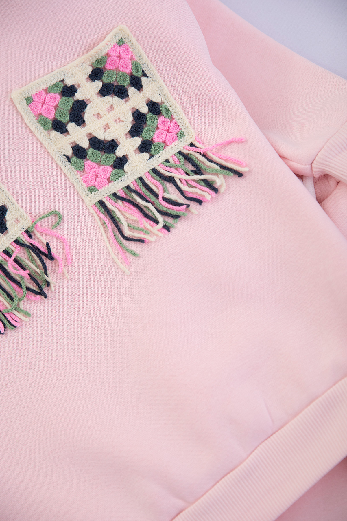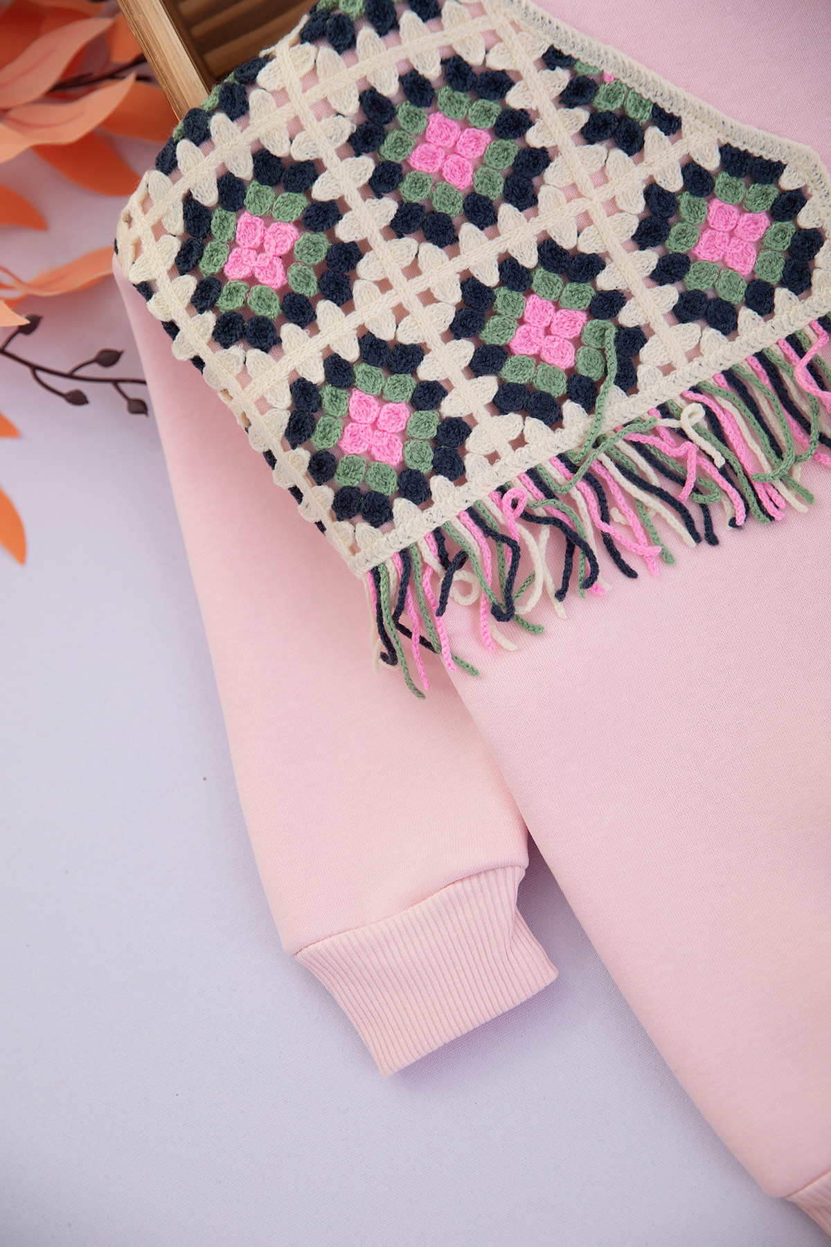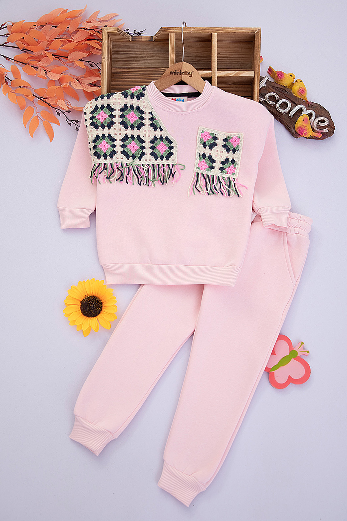 Kız Çocuk Örgülü Atkı Nakışlı İkili Takım - 5574 (3-10 Yaş)
