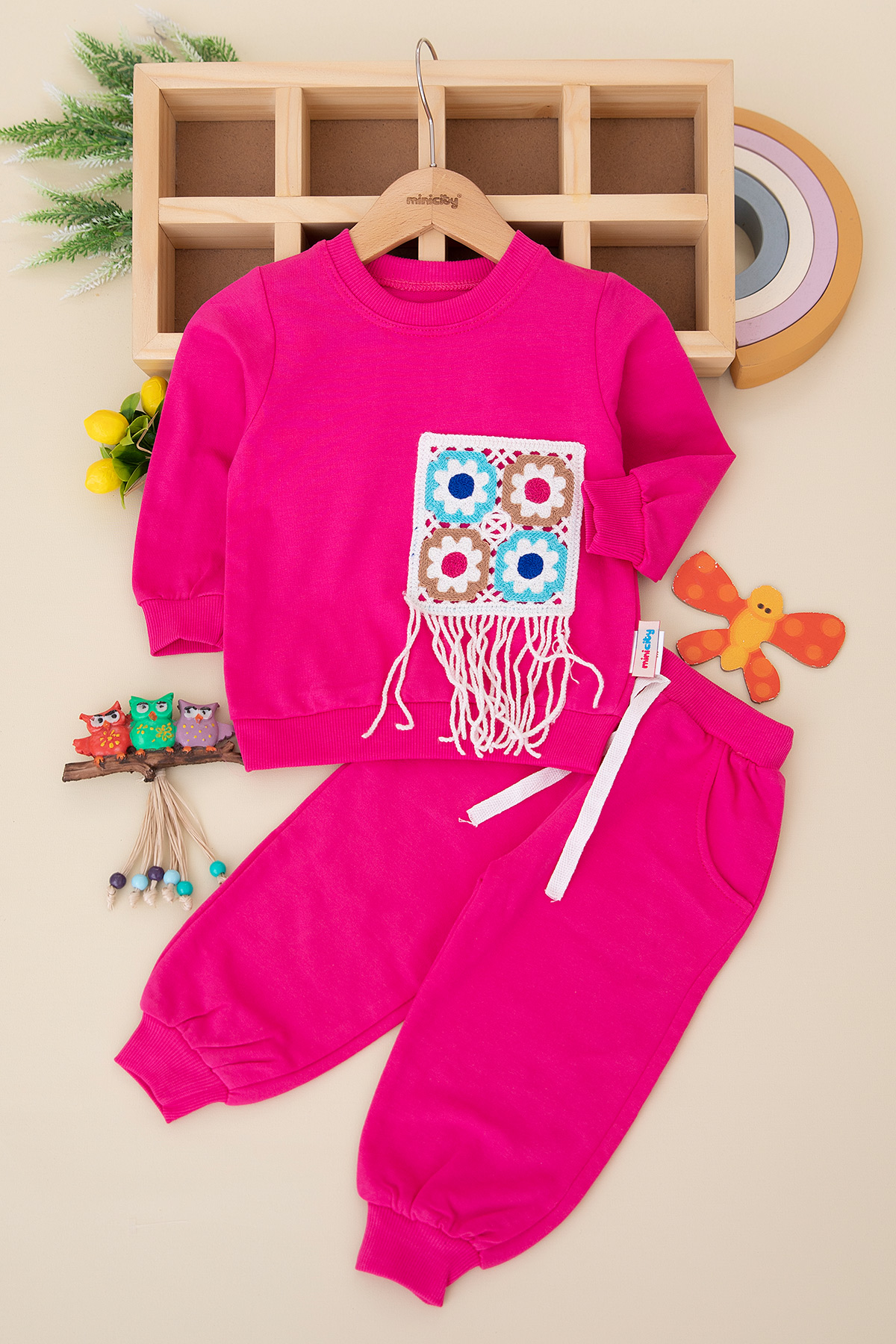 Kız Çocuk Örgülü Papatya Nakışlı Takım - 8473 (1-3 Yaş)