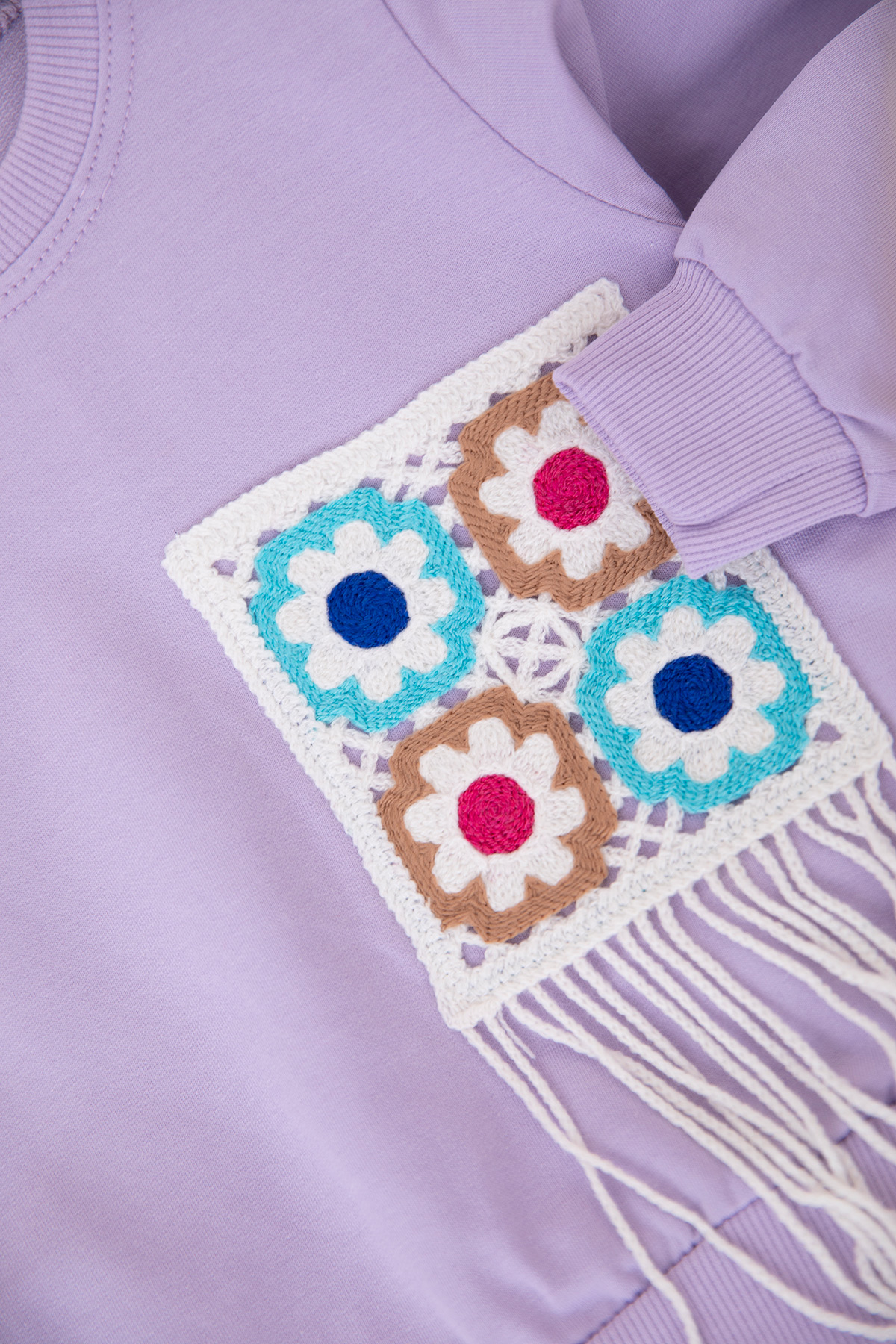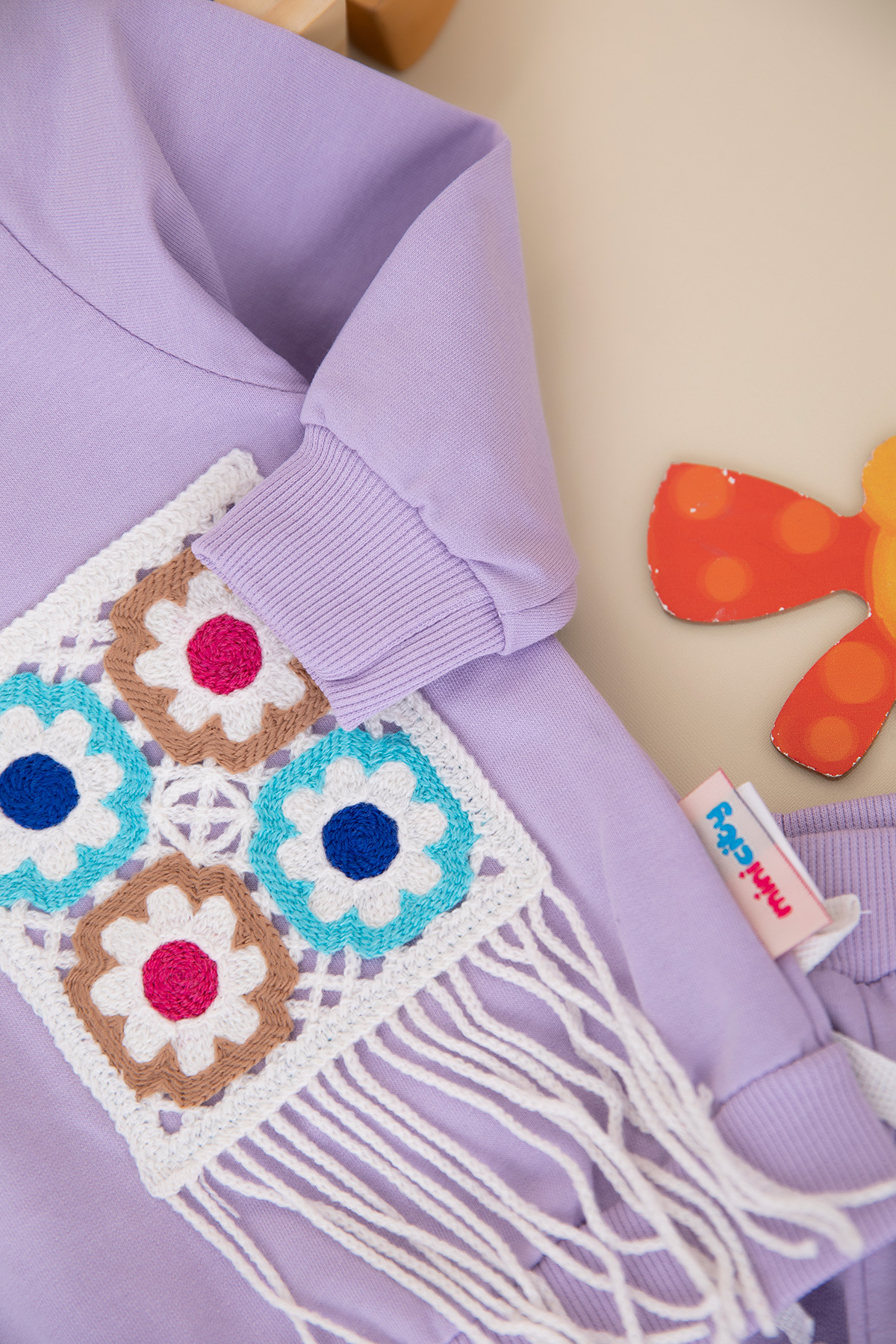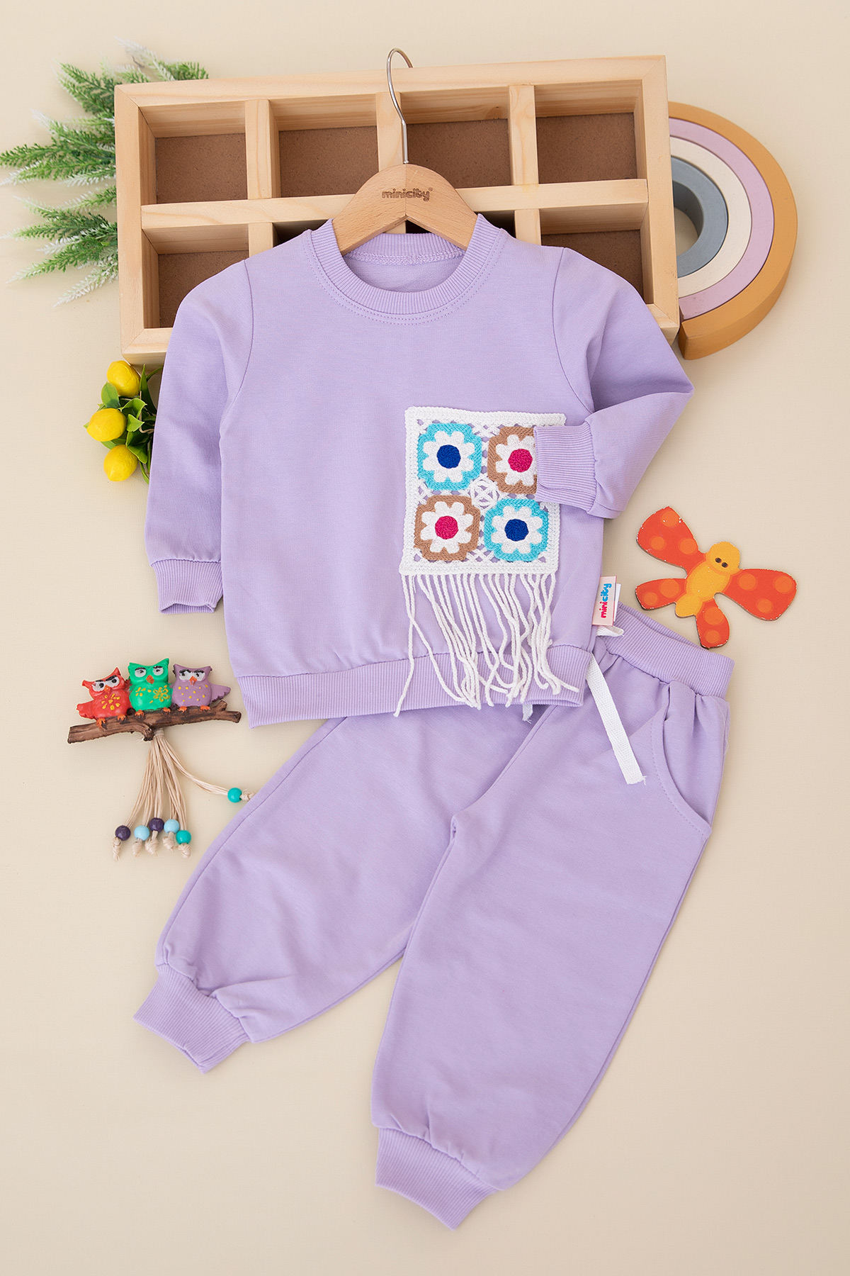Kız Çocuk Örgülü Papatya Nakışlı Takım - 8473 (1-3 Yaş)