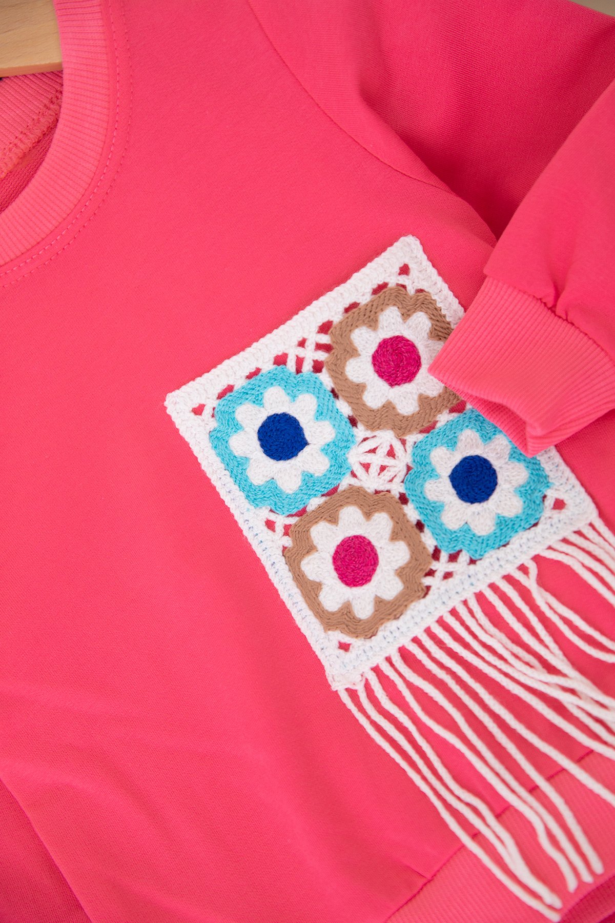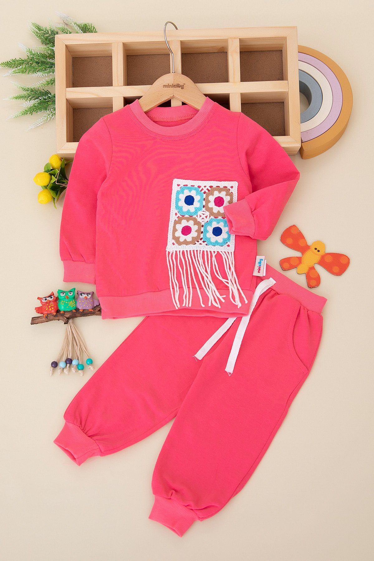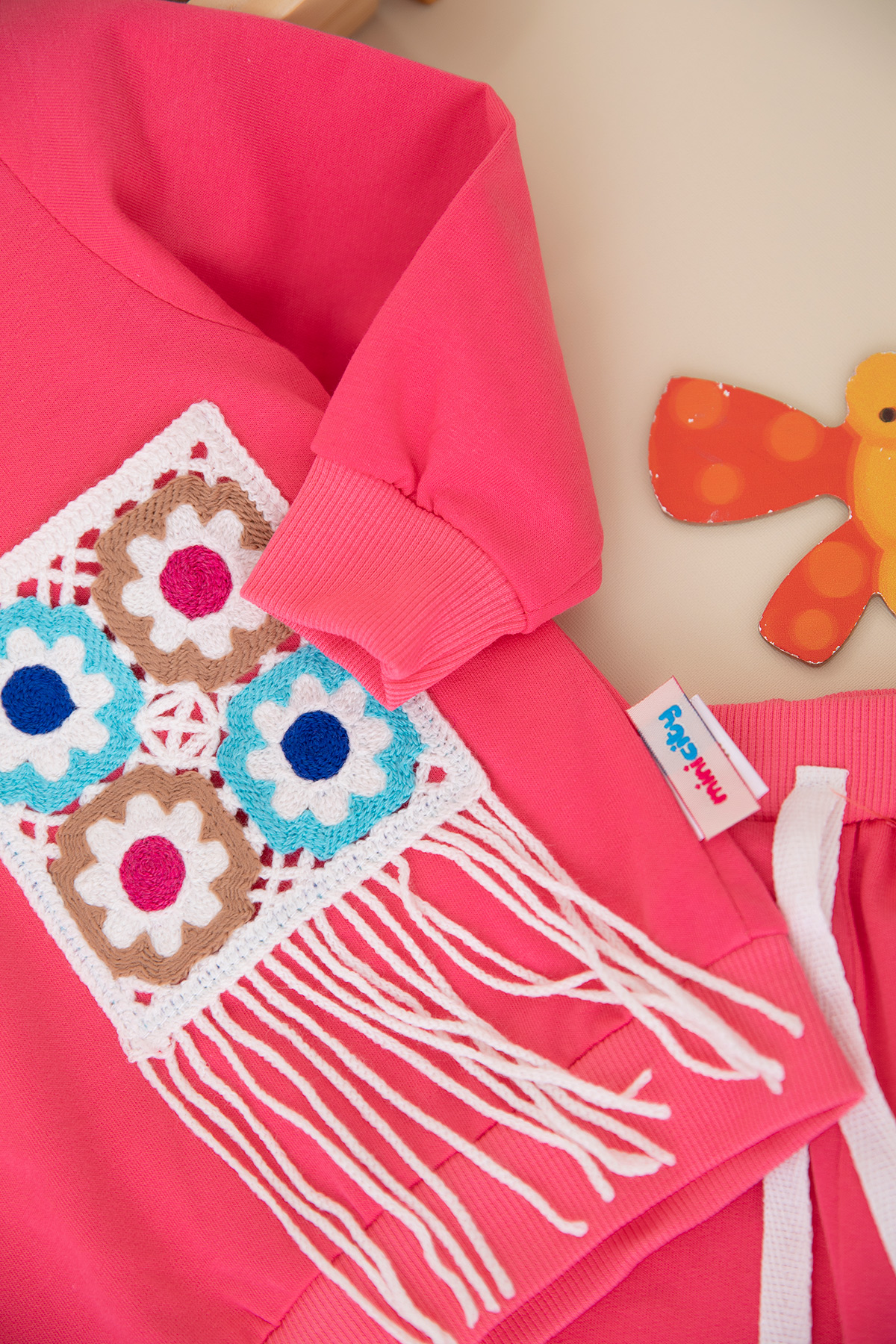 Kız Çocuk Örgülü Papatya Nakışlı Takım - 8473 (1-3 Yaş)