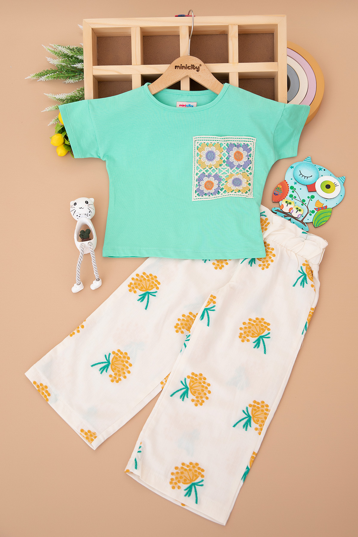 Kız Çocuk Örme Cepli Pantolonlu Takım - 24168 (3-6 Yaş)