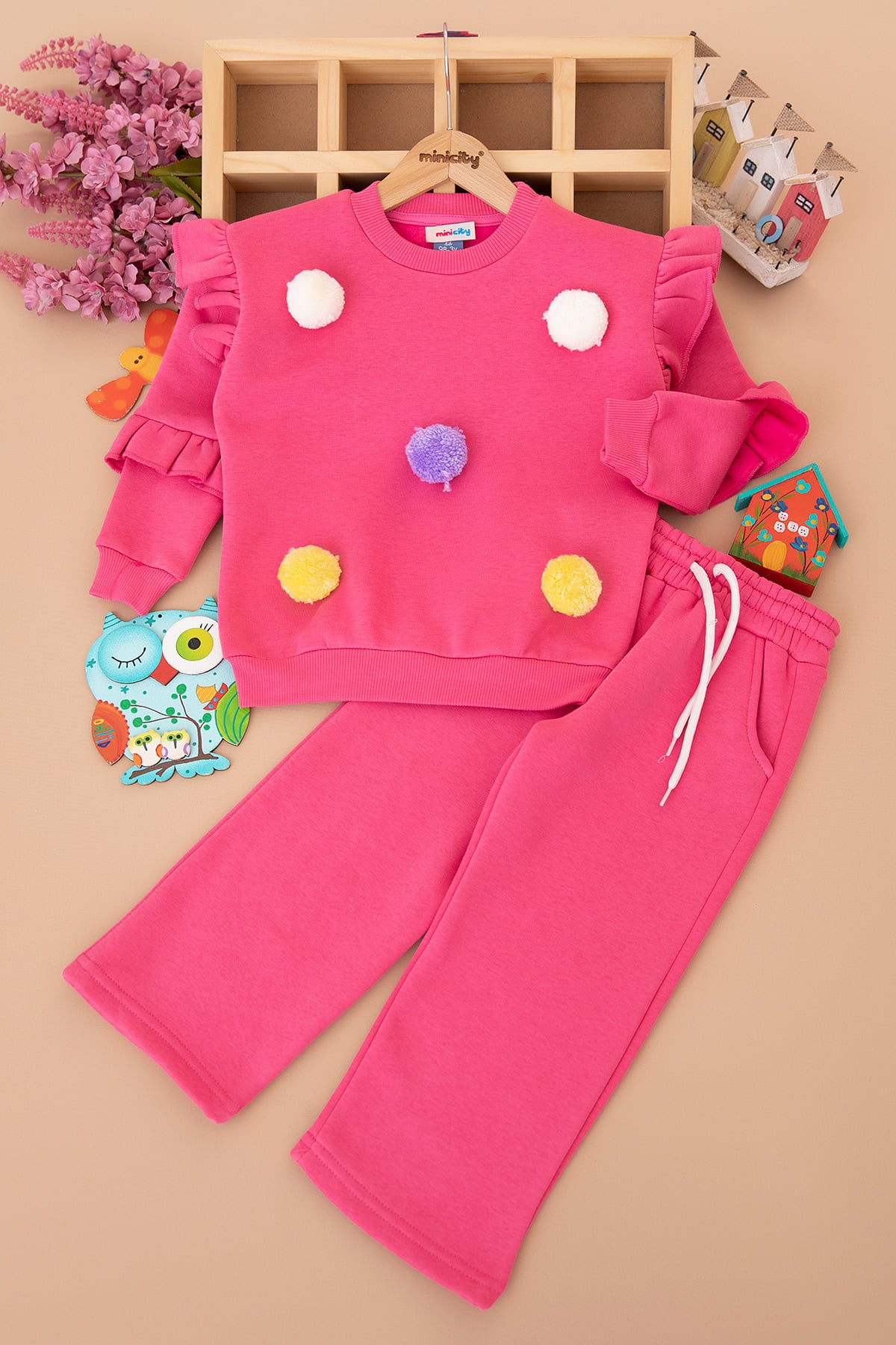 Kız Çocuk Pon Ponlu Üçip Takım - 25965 (3-6 Yaş)