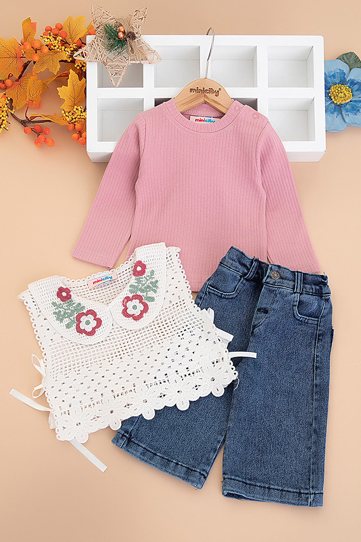 Kız Çocuk Örme Yakalı Süveterli Takım - 26122 (3-6 Yaş)