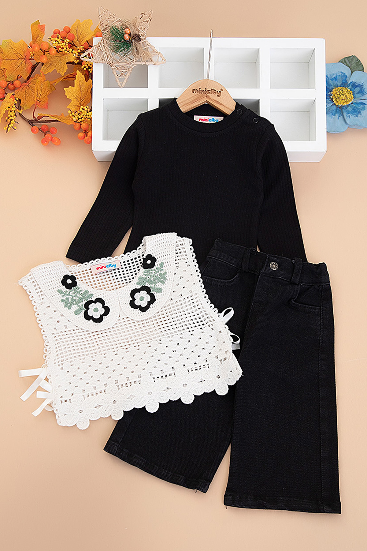 Kız Çocuk Örme Yakalı Süveterli Takım - 26122 (3-6 Yaş)