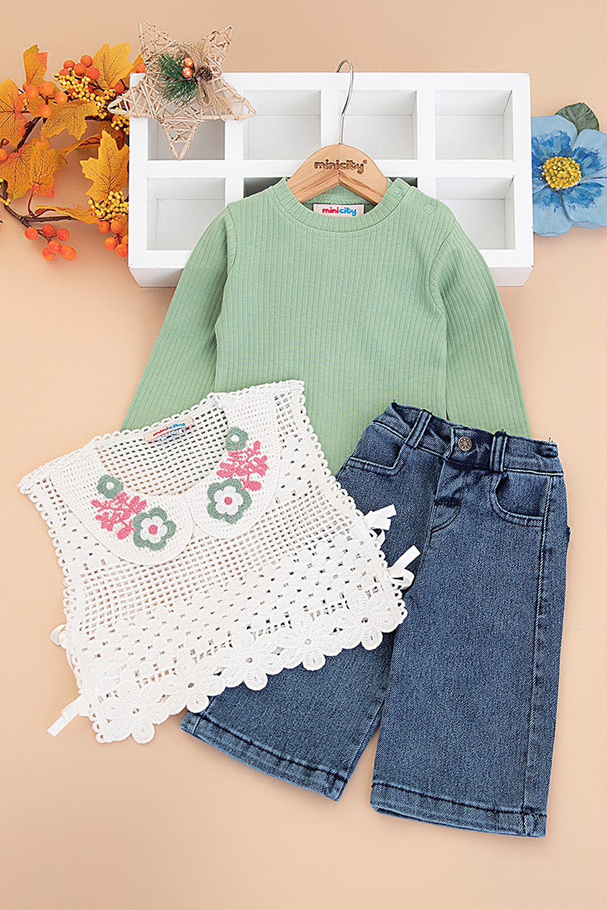 Kız Çocuk Örme Yakalı Süveterli Takım - 26122 (3-6 Yaş)