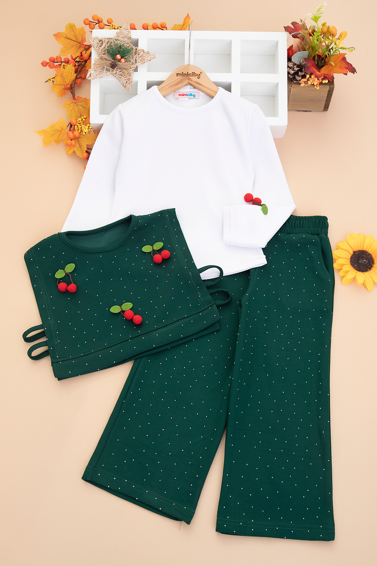 Kız Çocuk Oysho Kiraz Aksesuarlı Üçlü Takım (4-12 Yaş)