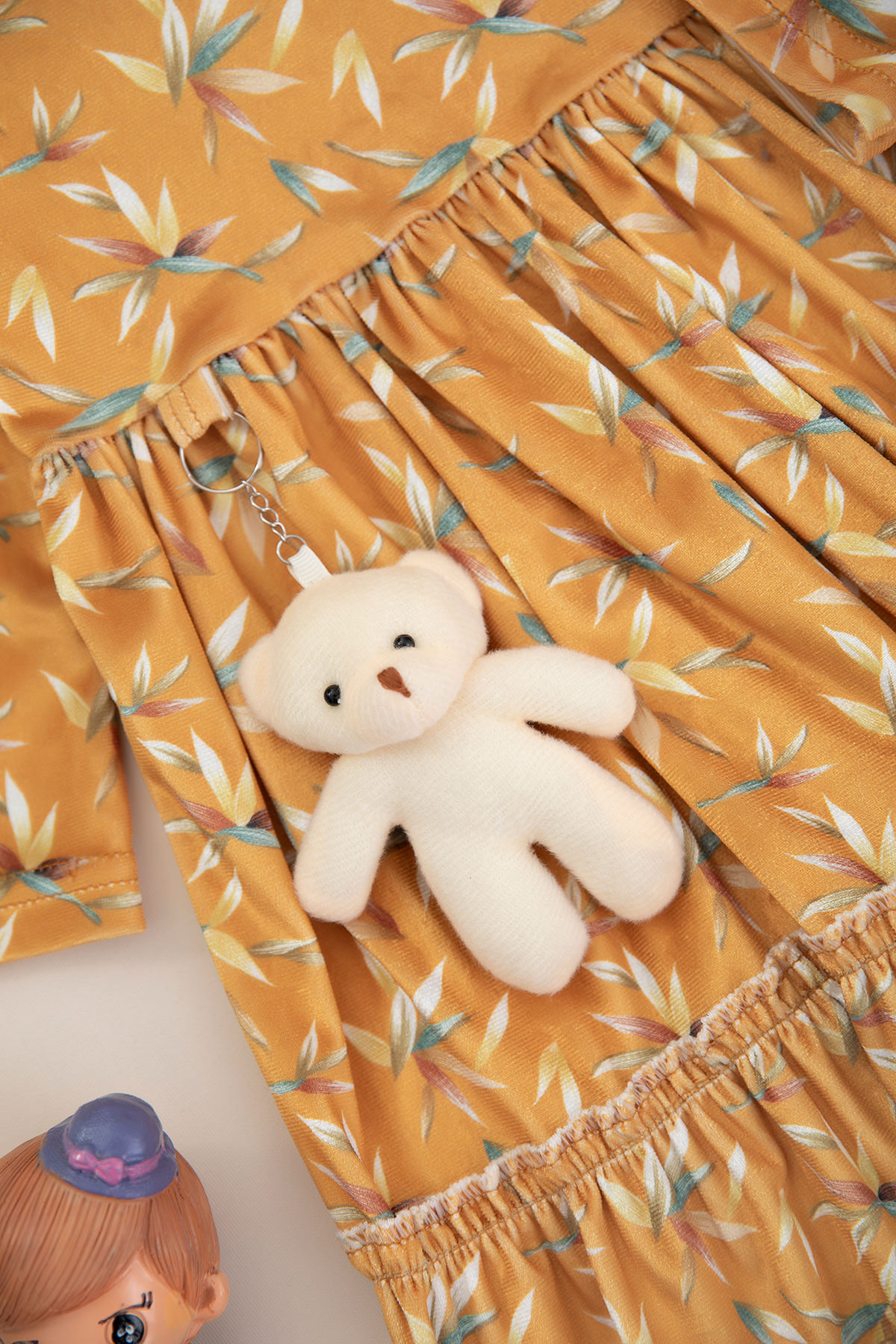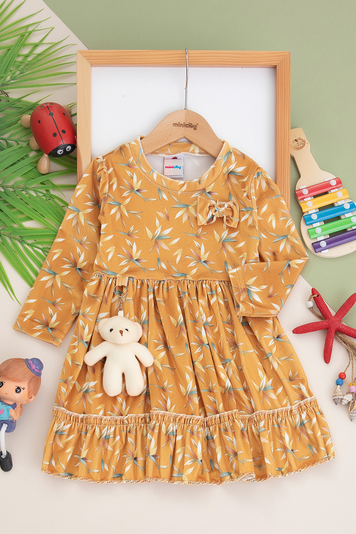 Kız Çocuk Oyuncaklı Çiçekli Kadife Elbise - 400 (1-3 Yaş)
