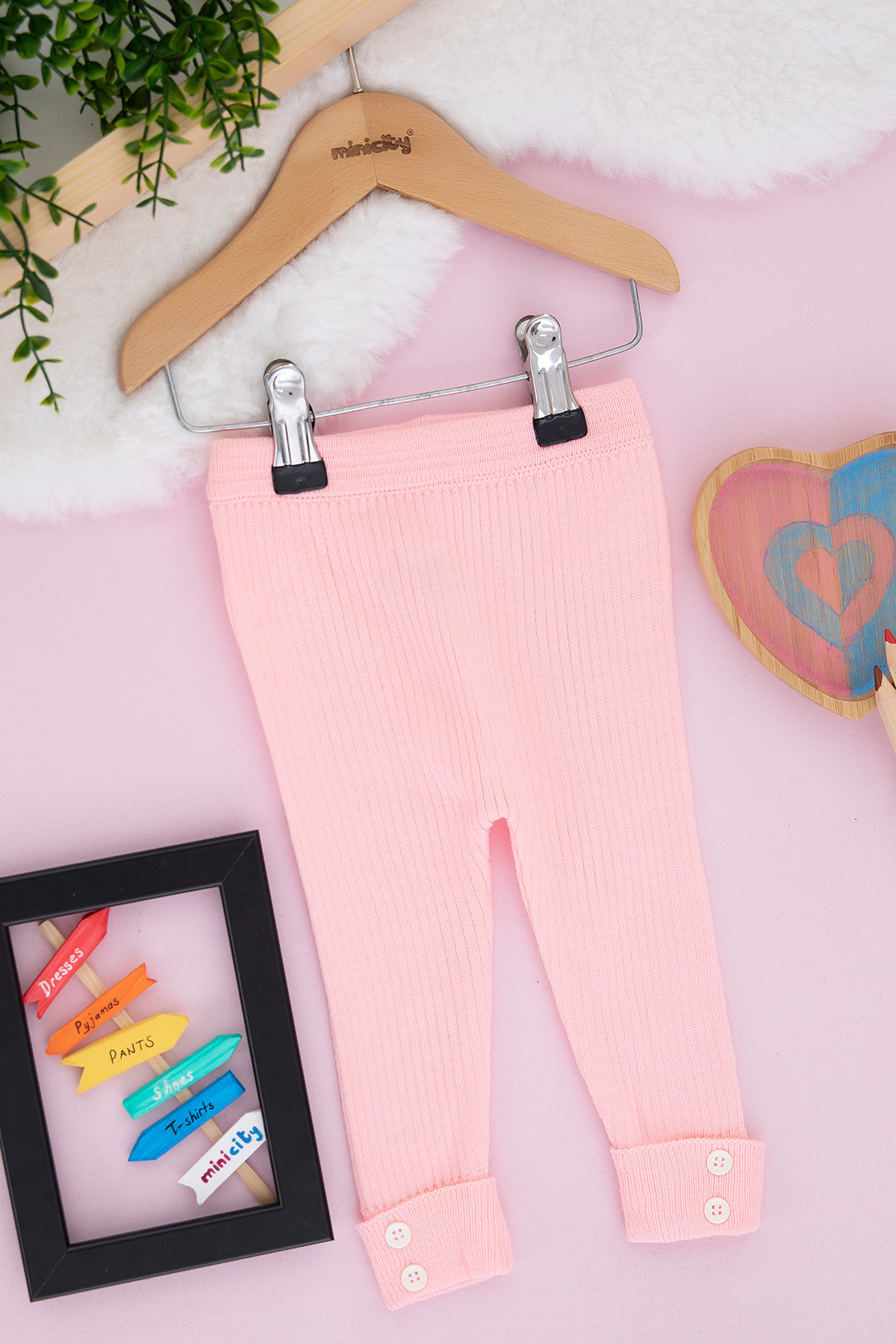 Kız Çocuk Paça Düğmeli Triko Tayt - 6015 (1-5 Yaş)
