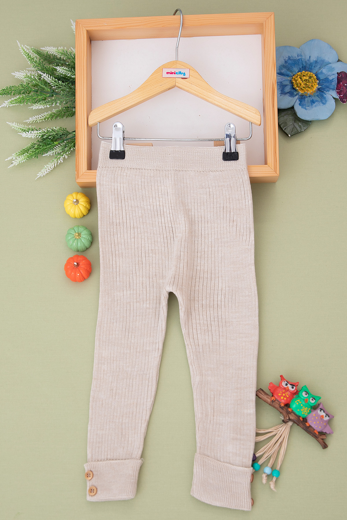 Kız Çocuk Paça Düğmeli Triko Tayt - 6015 (1-5 Yaş)