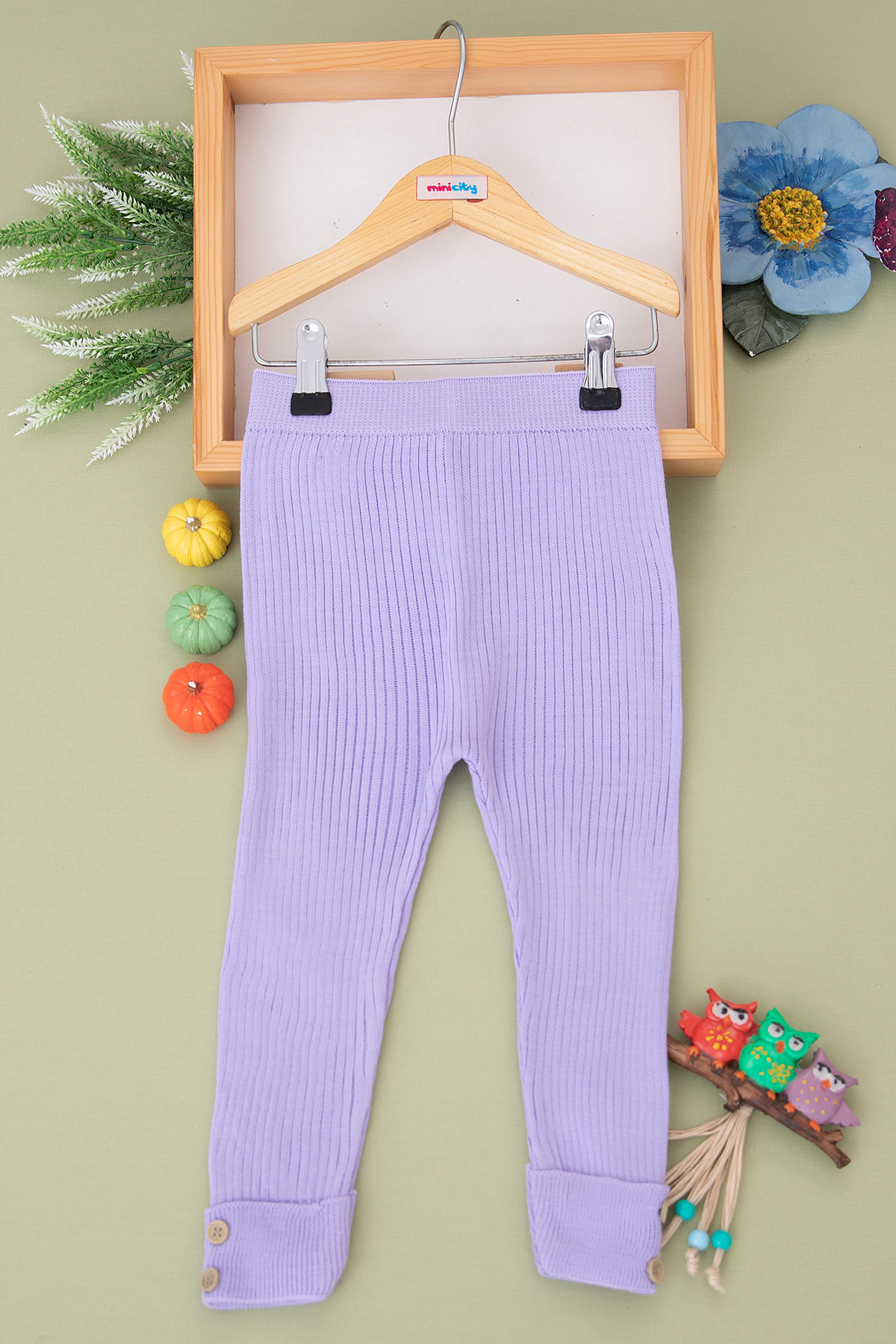 Kız Çocuk Paça Düğmeli Triko Tayt - 6015 (1-5 Yaş)