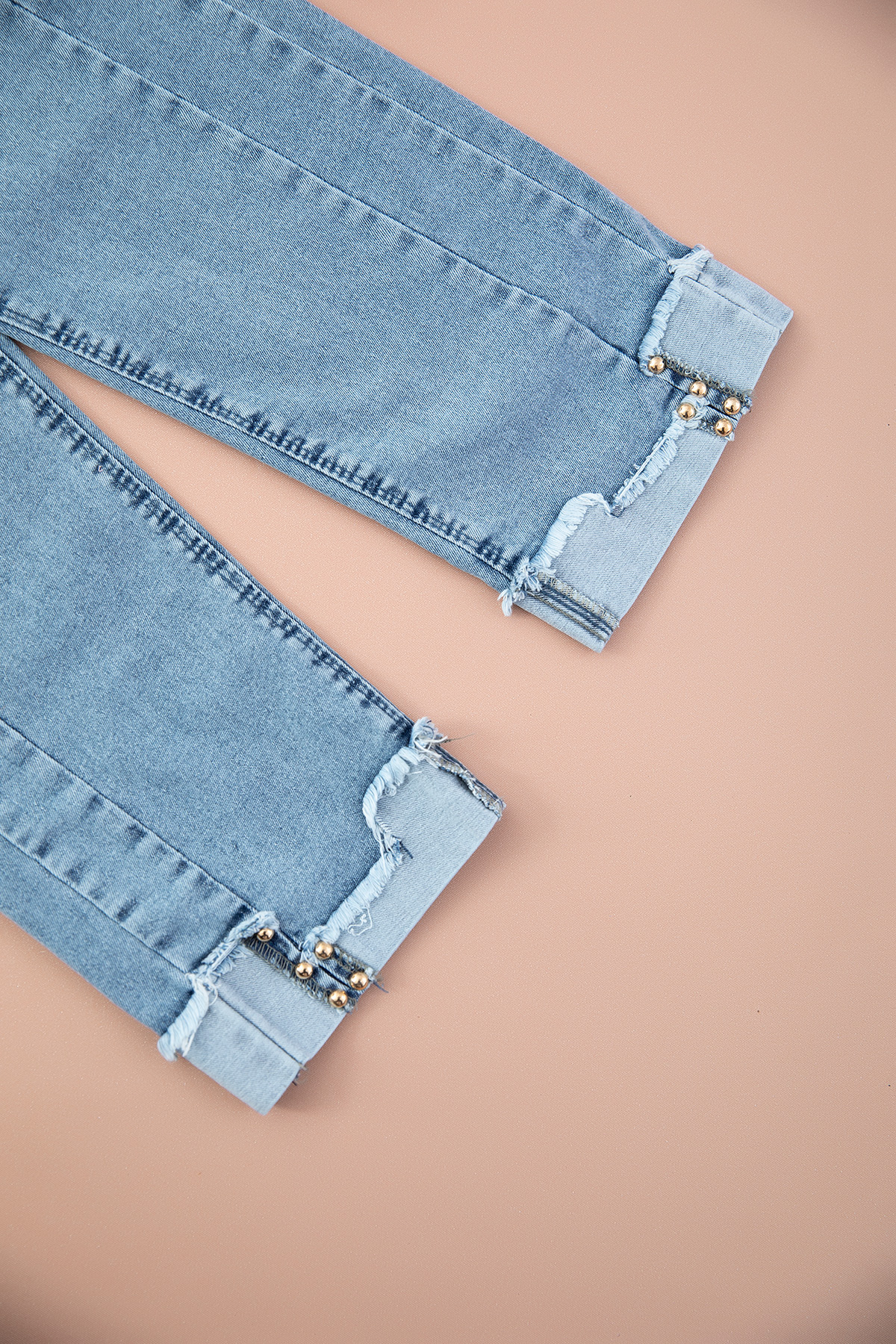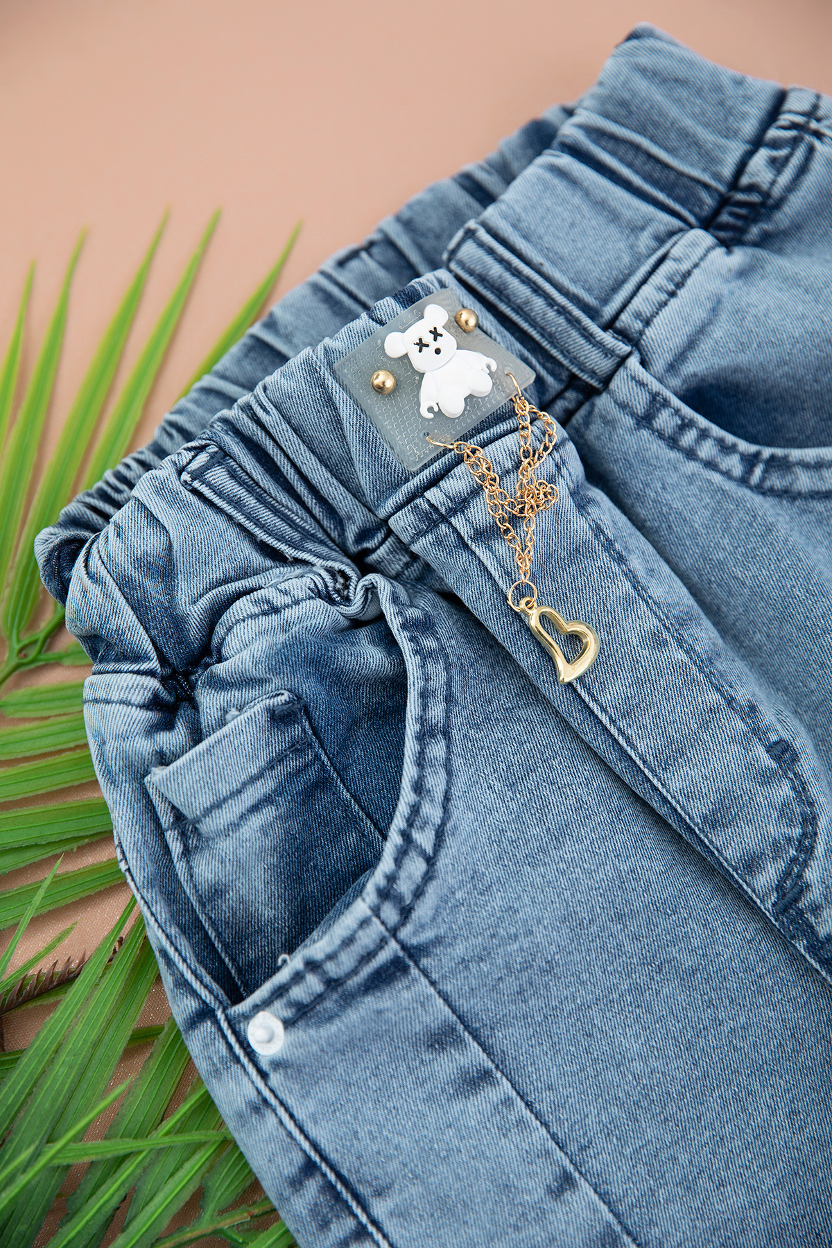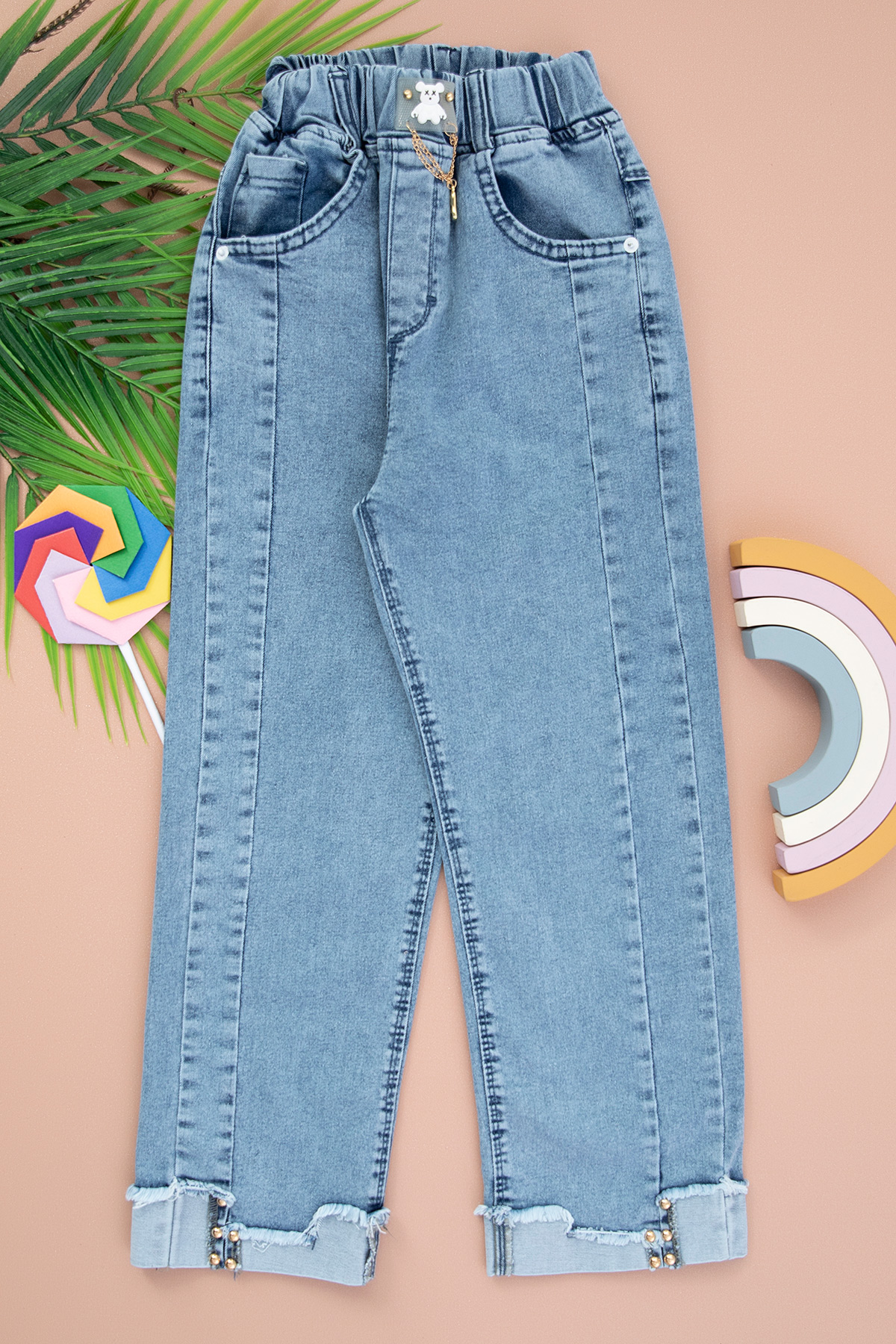 Kız Çocuk Paça İncili Kot Pantolon - 3289 (9-12 Yaş)