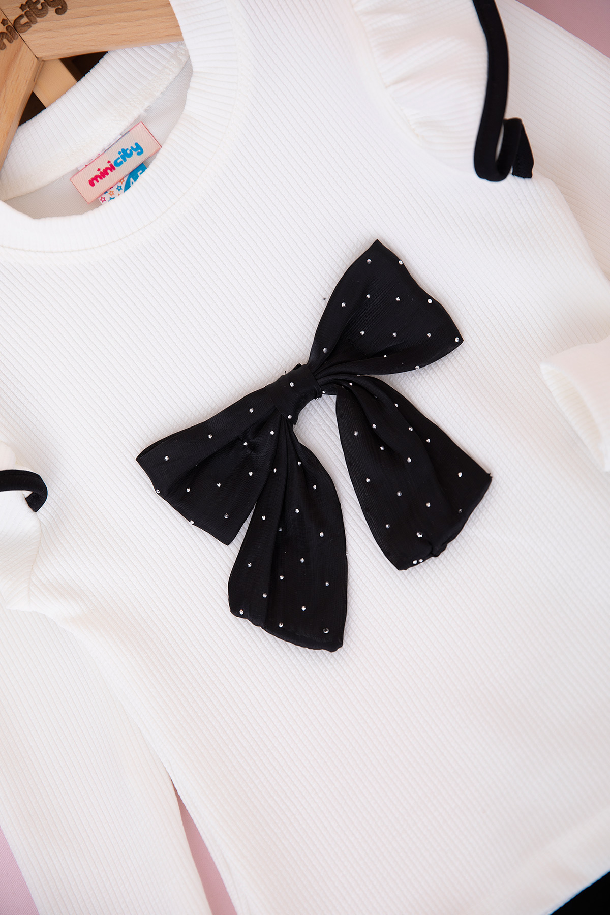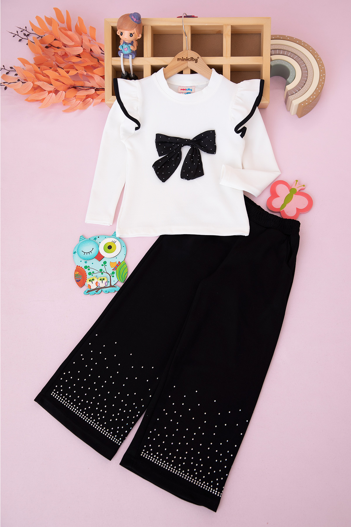 Kız Çocuk Paça Taşlı Fiyonklu Takım - 104 (4-8 Yaş)