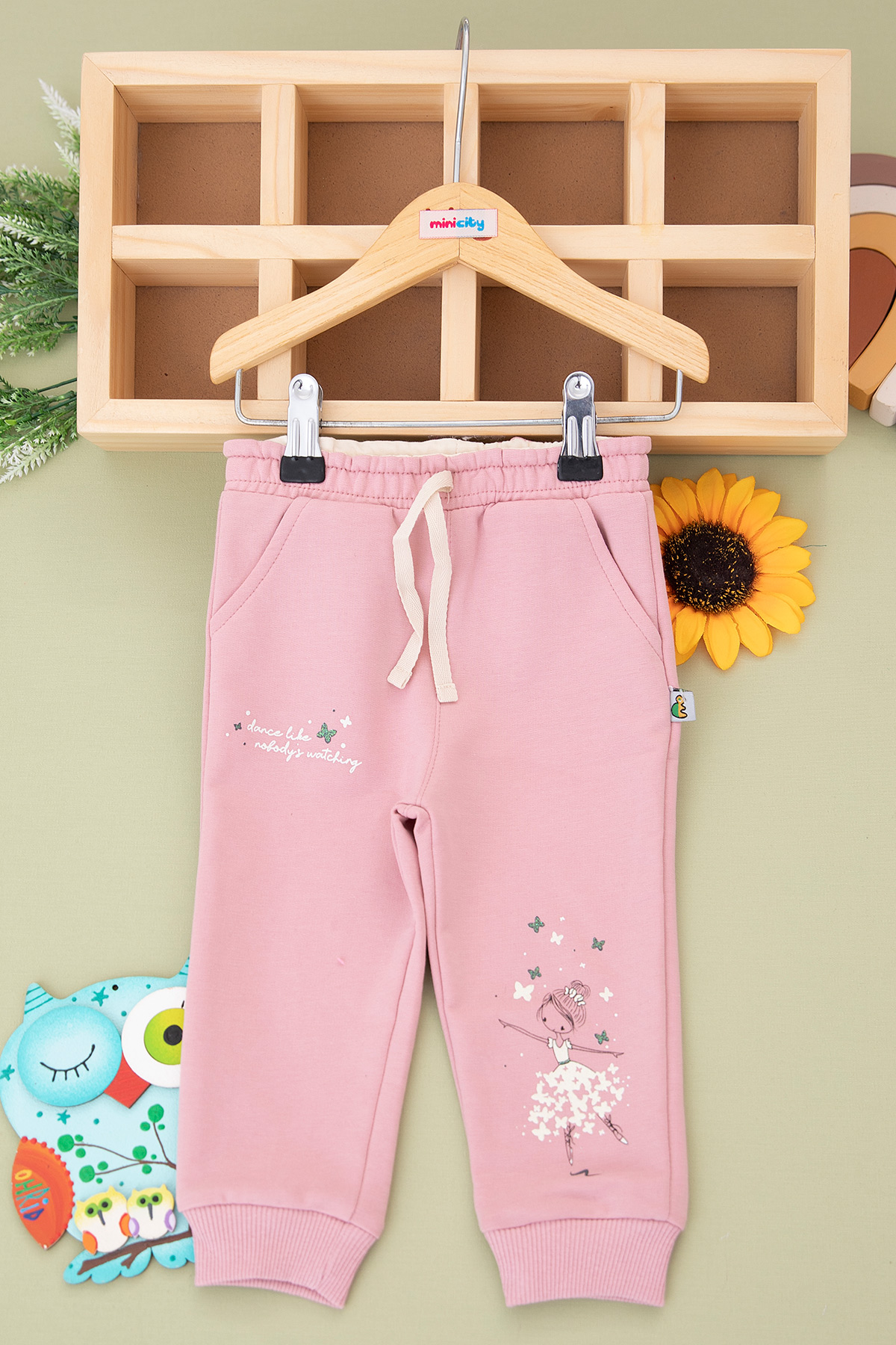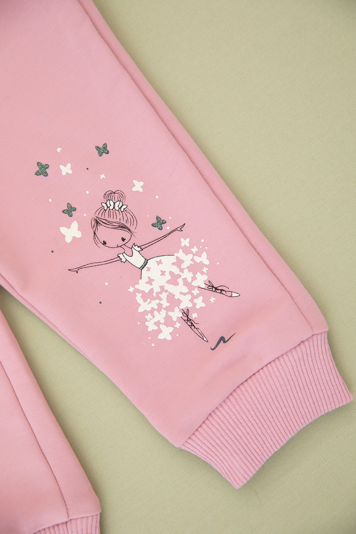 Kız Çocuk Paçası Balerin Baskılı Eşofman Alt - 5046 (1-4 Yaş)