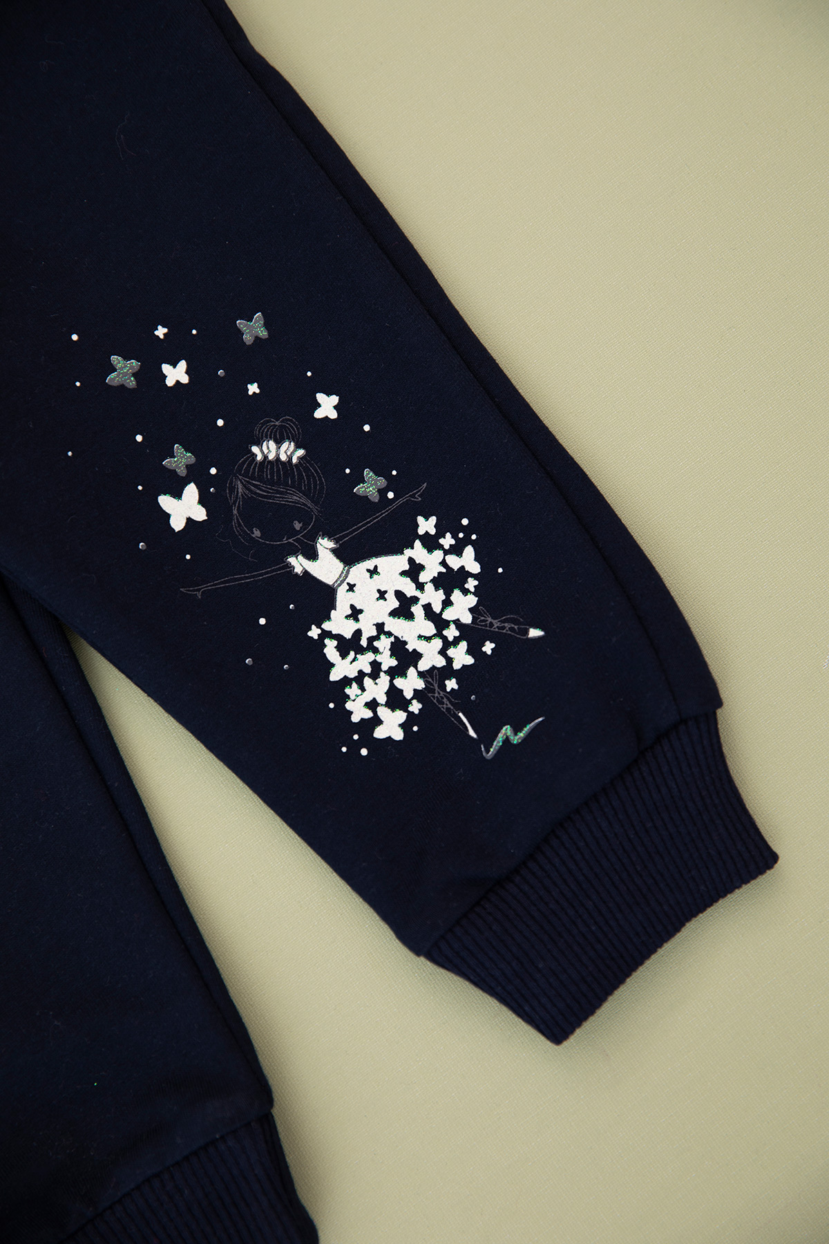 Kız Çocuk Paçası Balerin Baskılı Eşofman Alt - 5046 (1-4 Yaş)