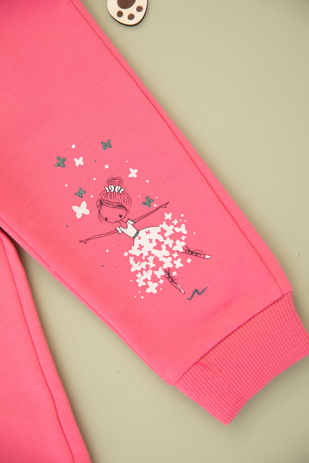 Kız Çocuk Paçası Balerin Baskılı Eşofman Alt - 5046 (1-4 Yaş)