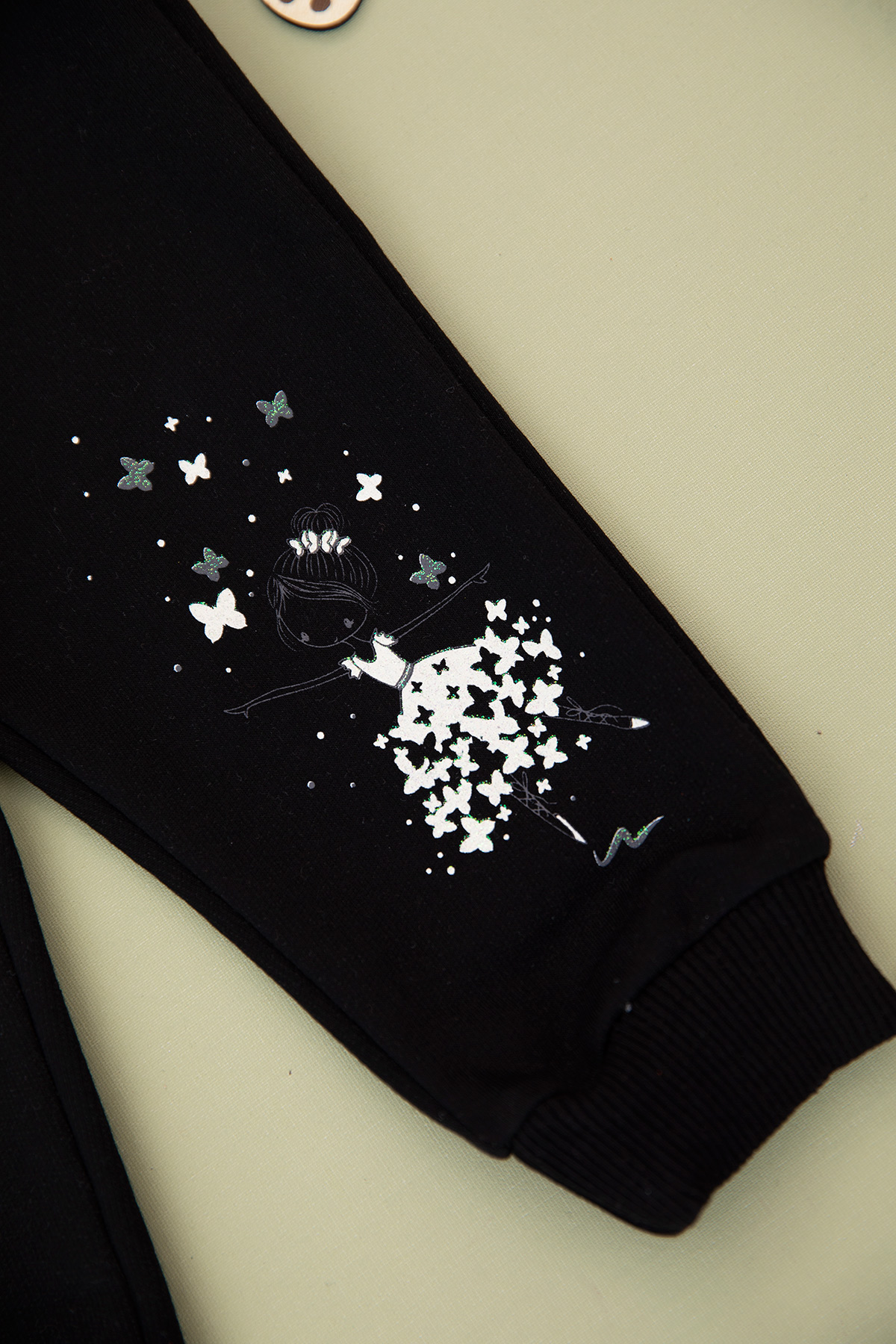 Kız Çocuk Paçası Balerin Baskılı Eşofman Alt - 5046 (1-4 Yaş)