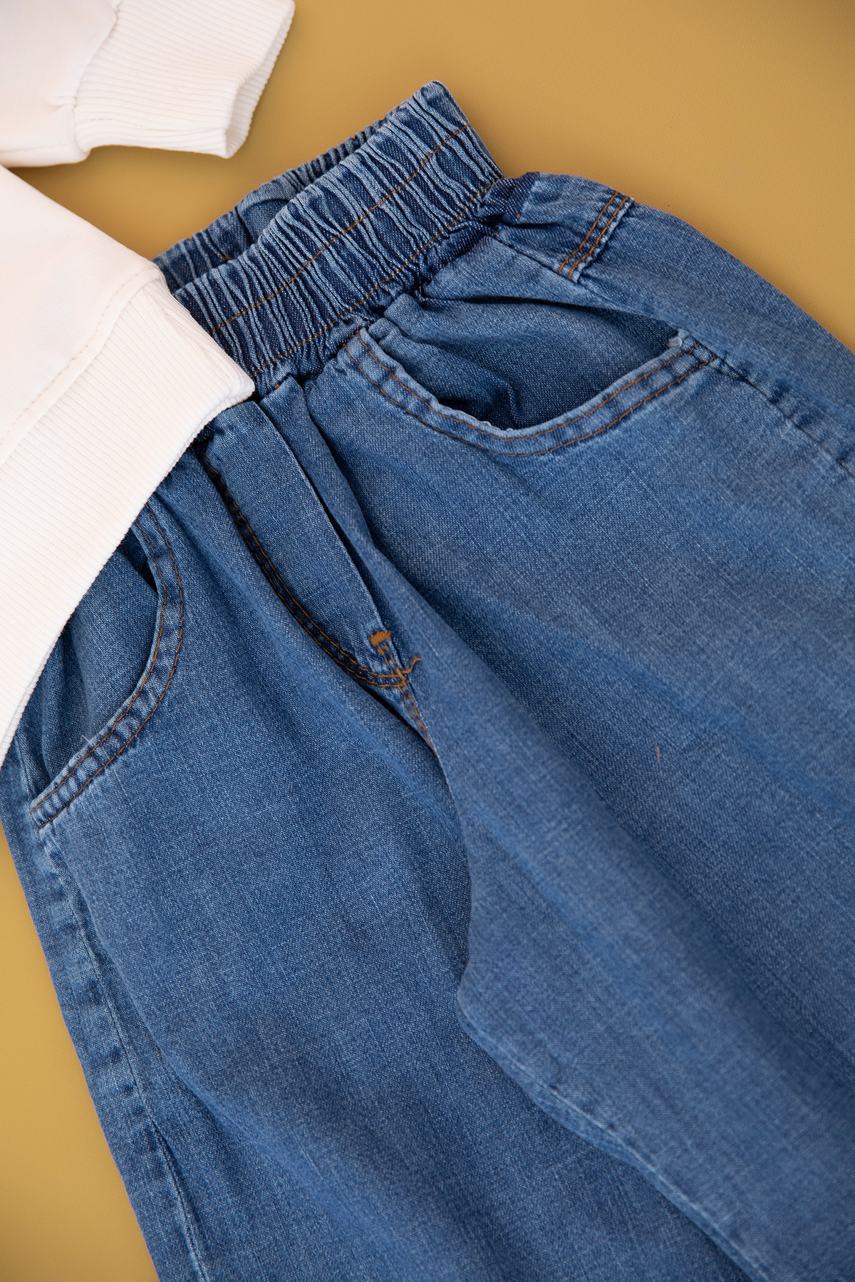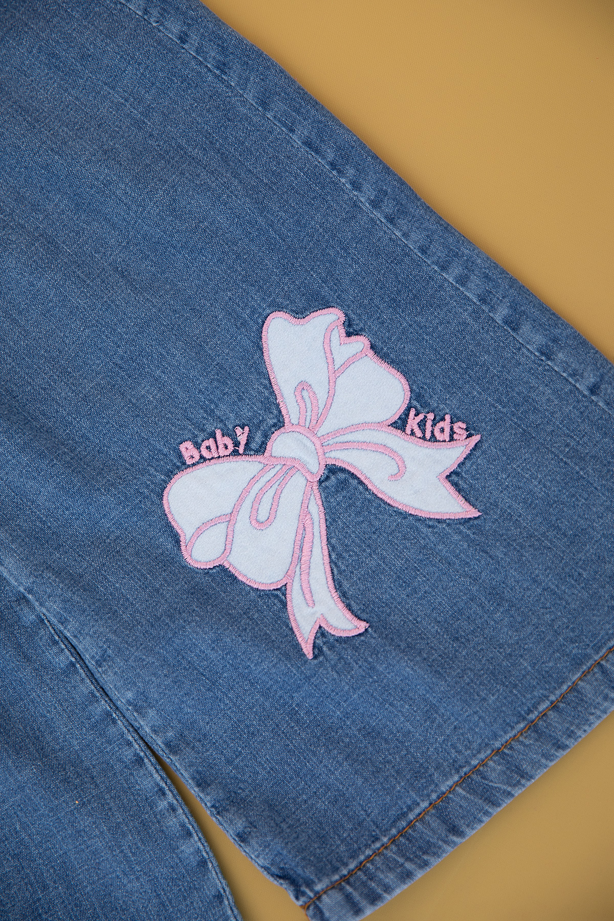 Kız Çocuk Paçası Fiyonk Nakışlı Pantolon Takım - 2701 (3-7 Yaş)