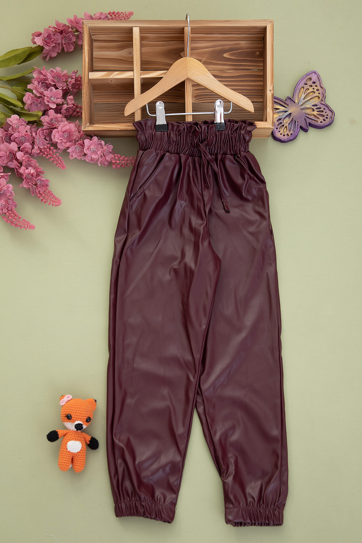 Kız Çocuk Paçası Lastikli Deri Tayt (7-16 Yaş)