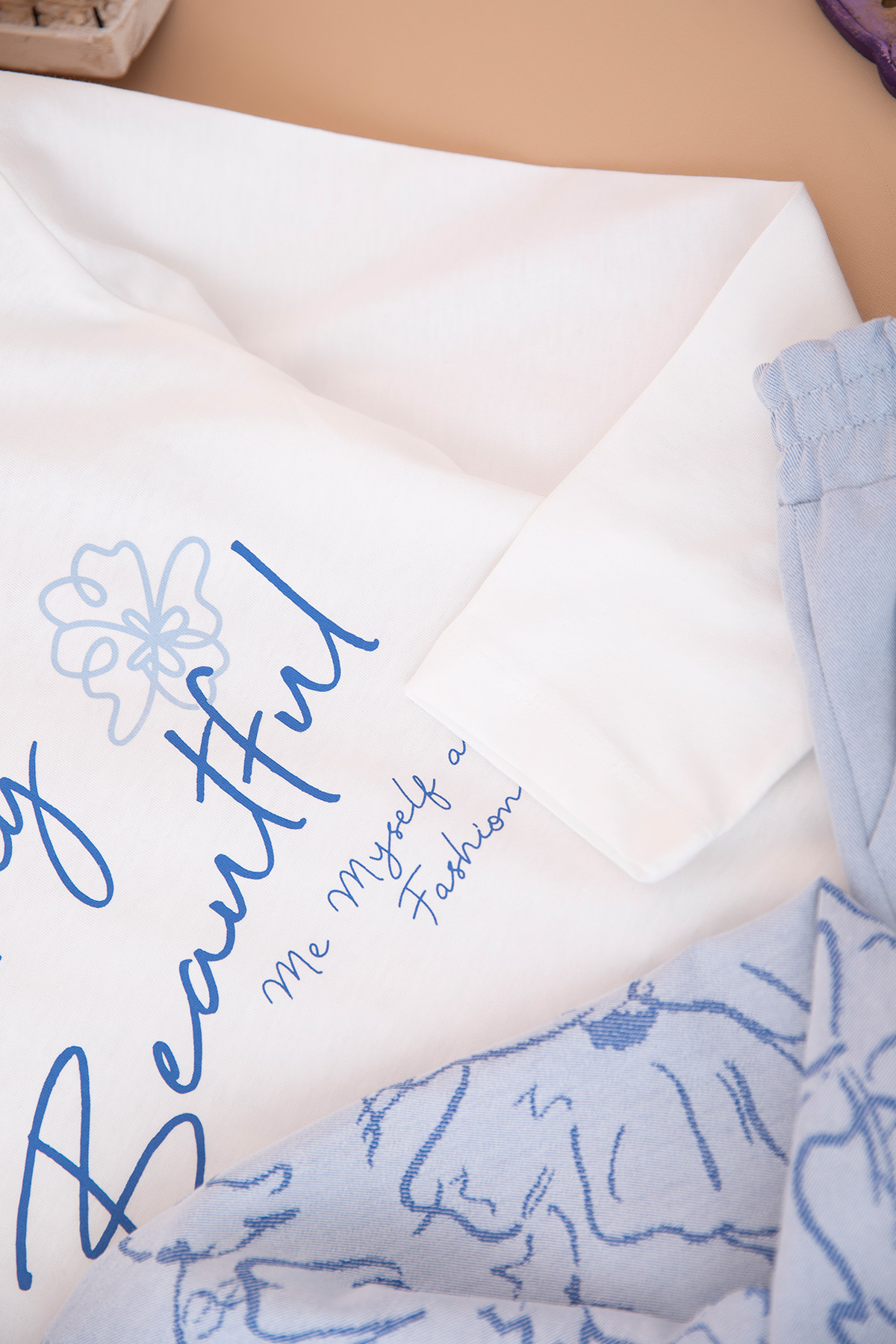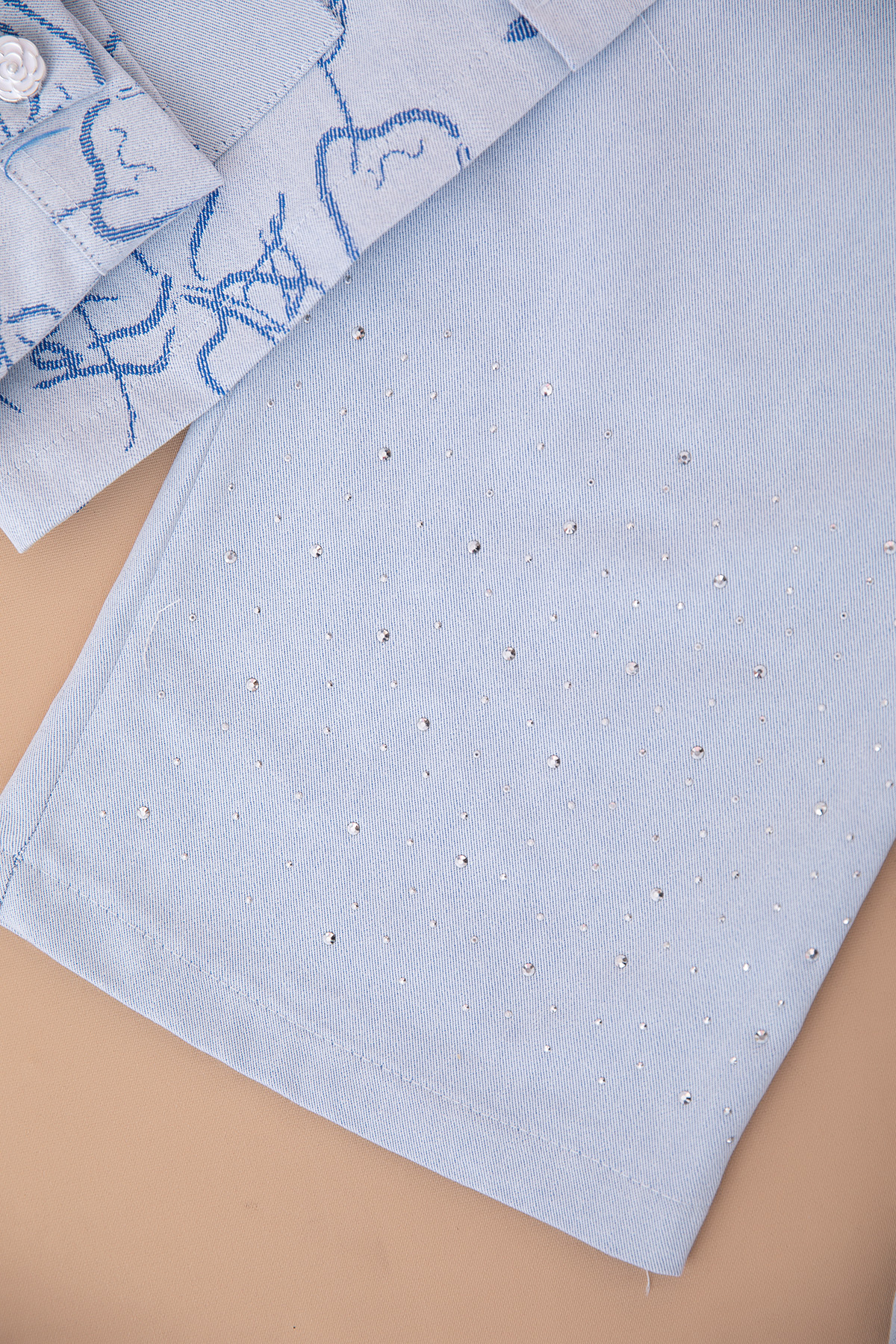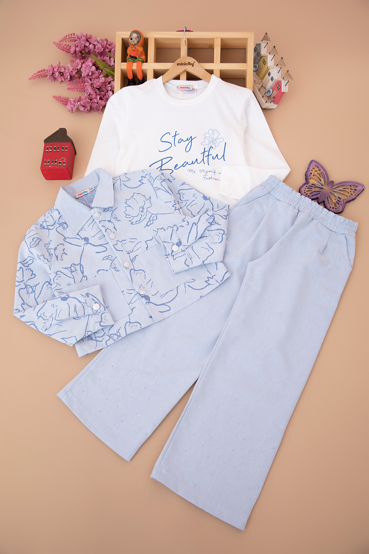 Kız Çocuk Paçası Taşlı Kot Takım - 320 (10-14 Yaş)