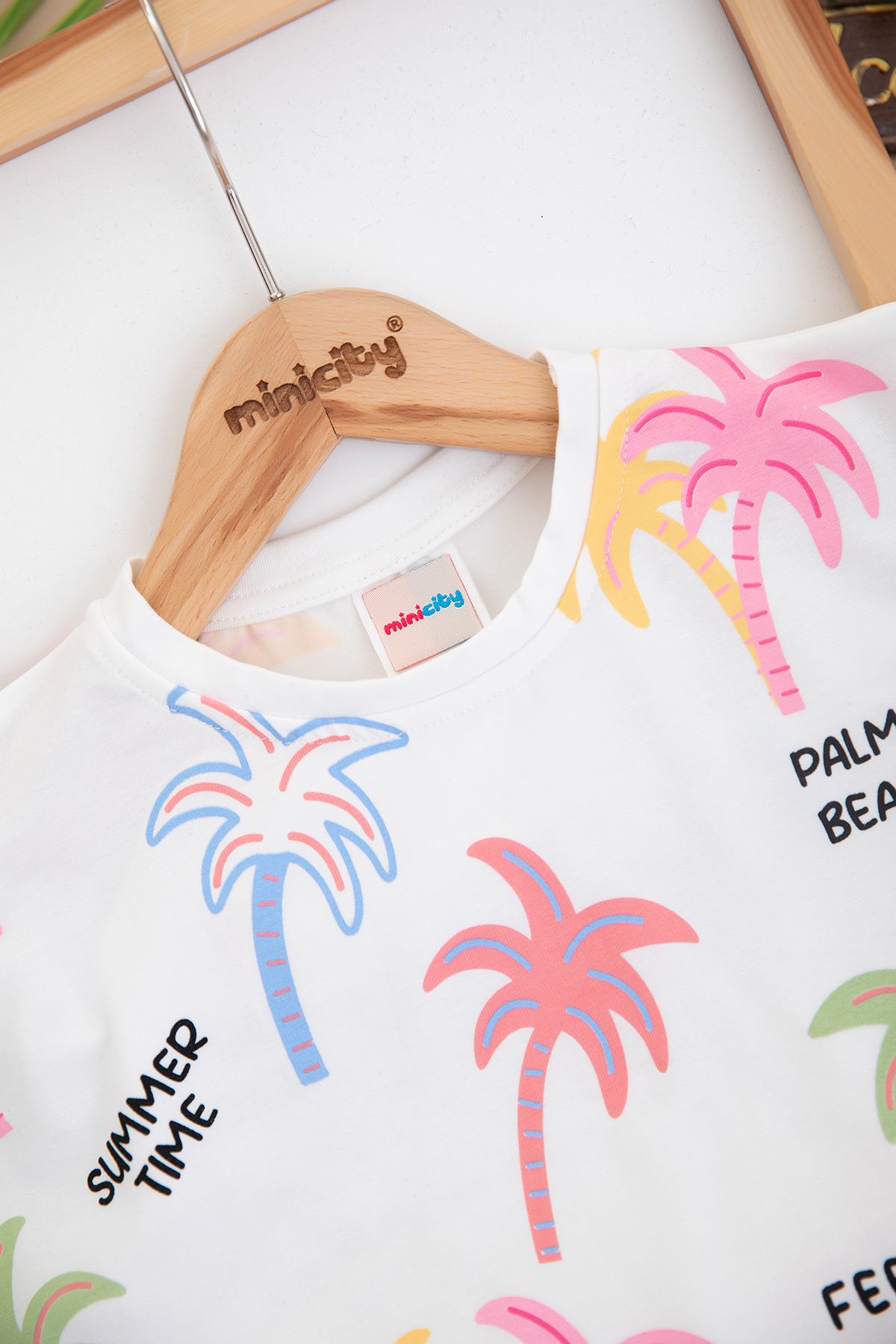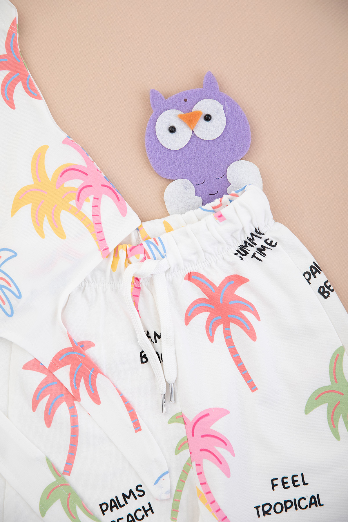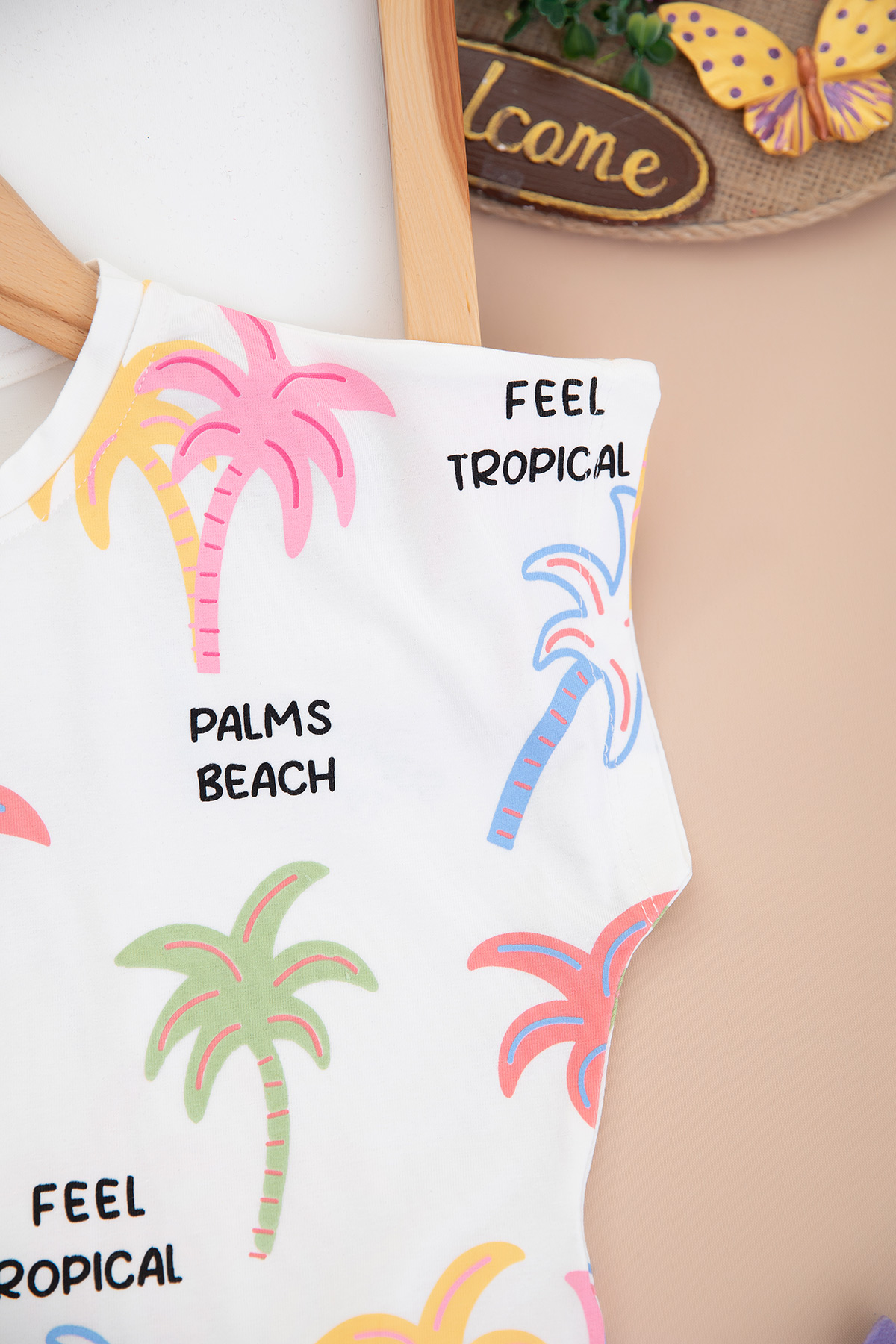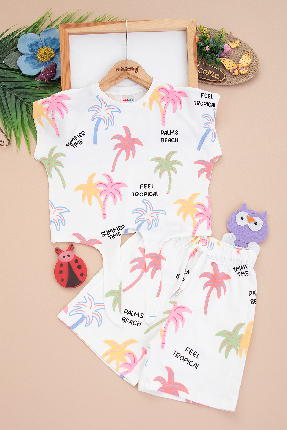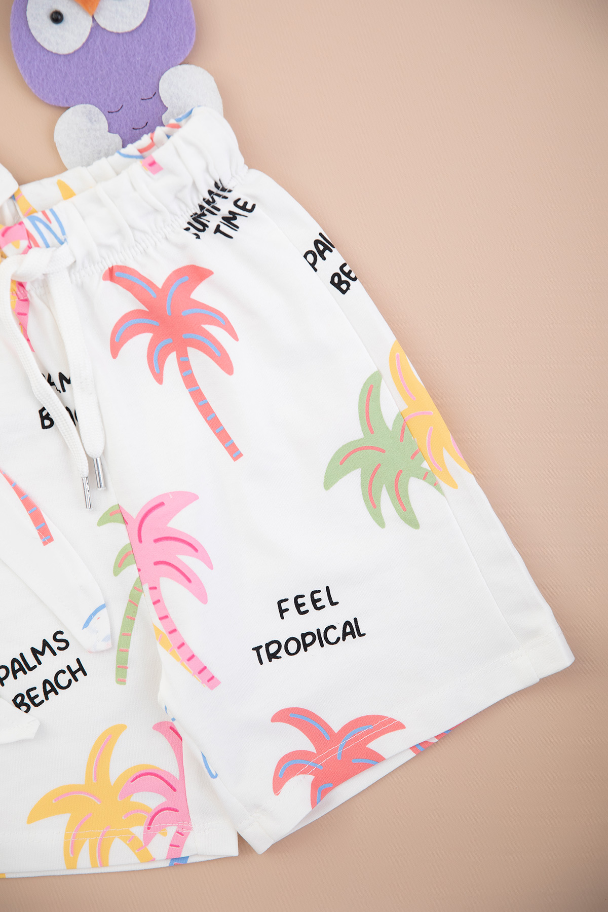 Kız Çocuk Palmiye Baskılı Şortlu Takım - 11077 (2-8 Yaş)