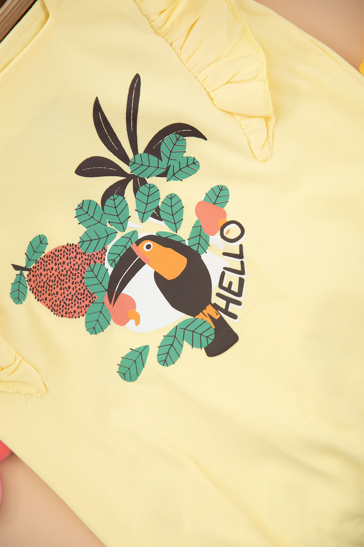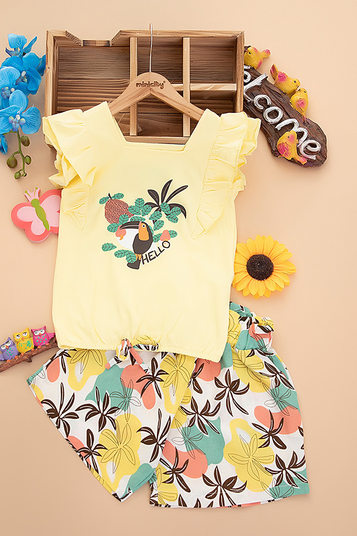 Kız Çocuk Papağan Baskılı Şortlu Takım - 25202 (7-10 Yaş)