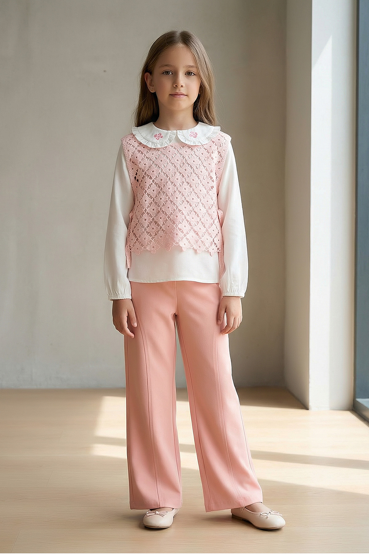 Kız Çocuk Papatya Bağlamalı Takım - 1736 (7-10 Yaş)