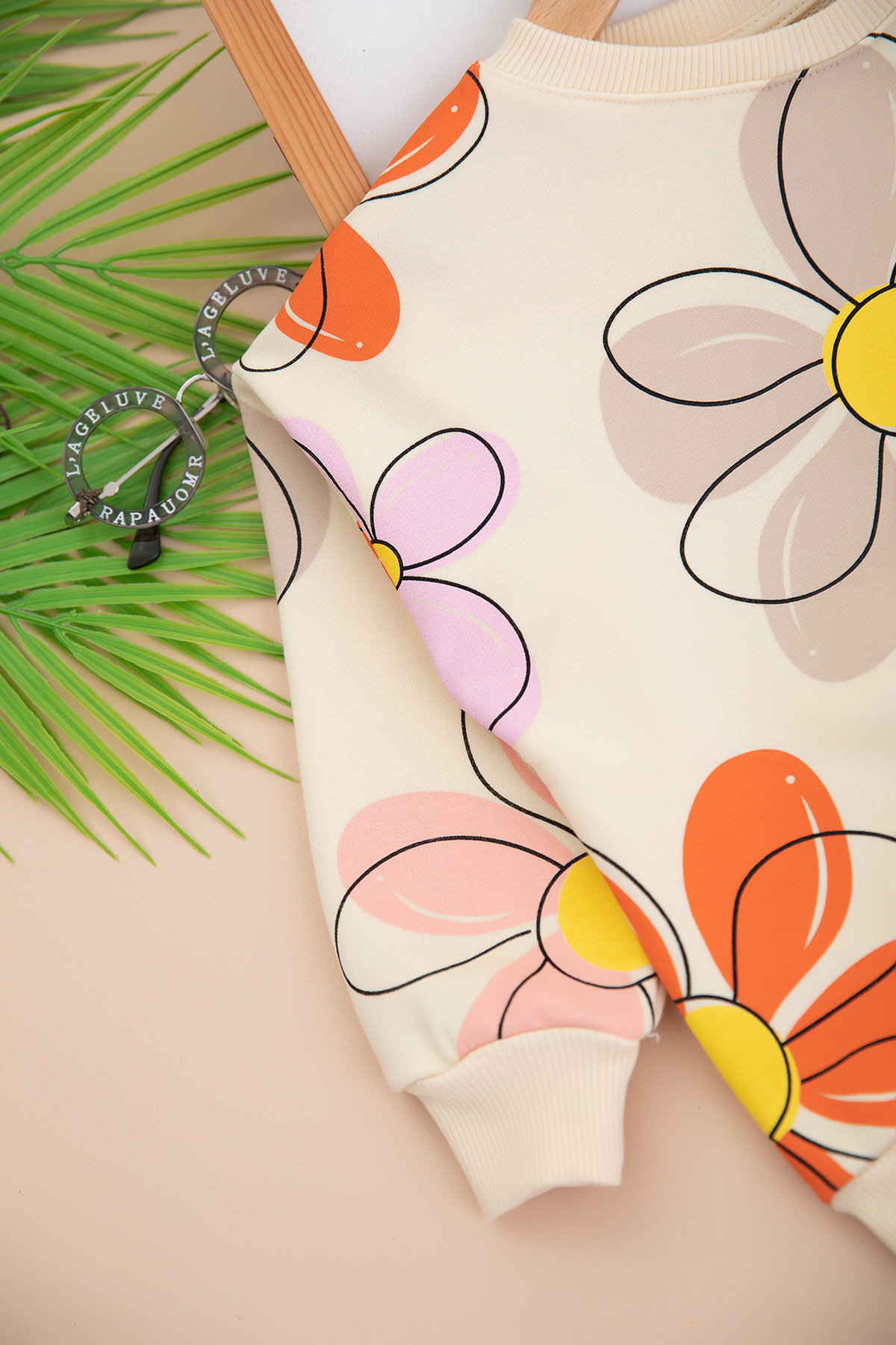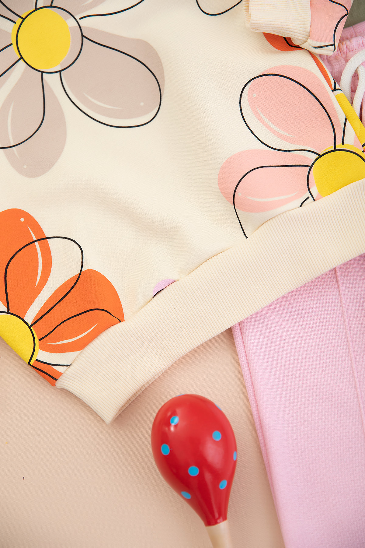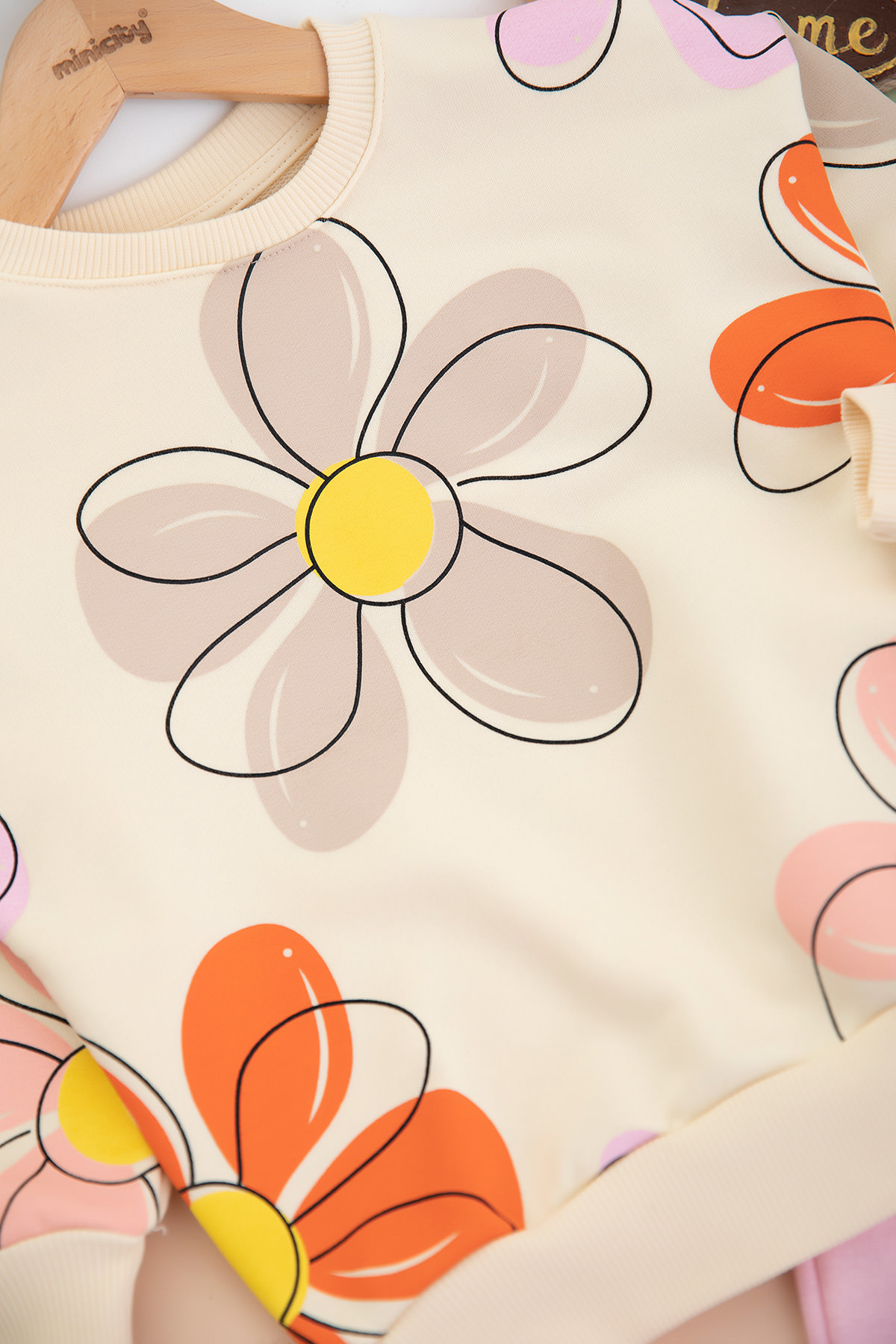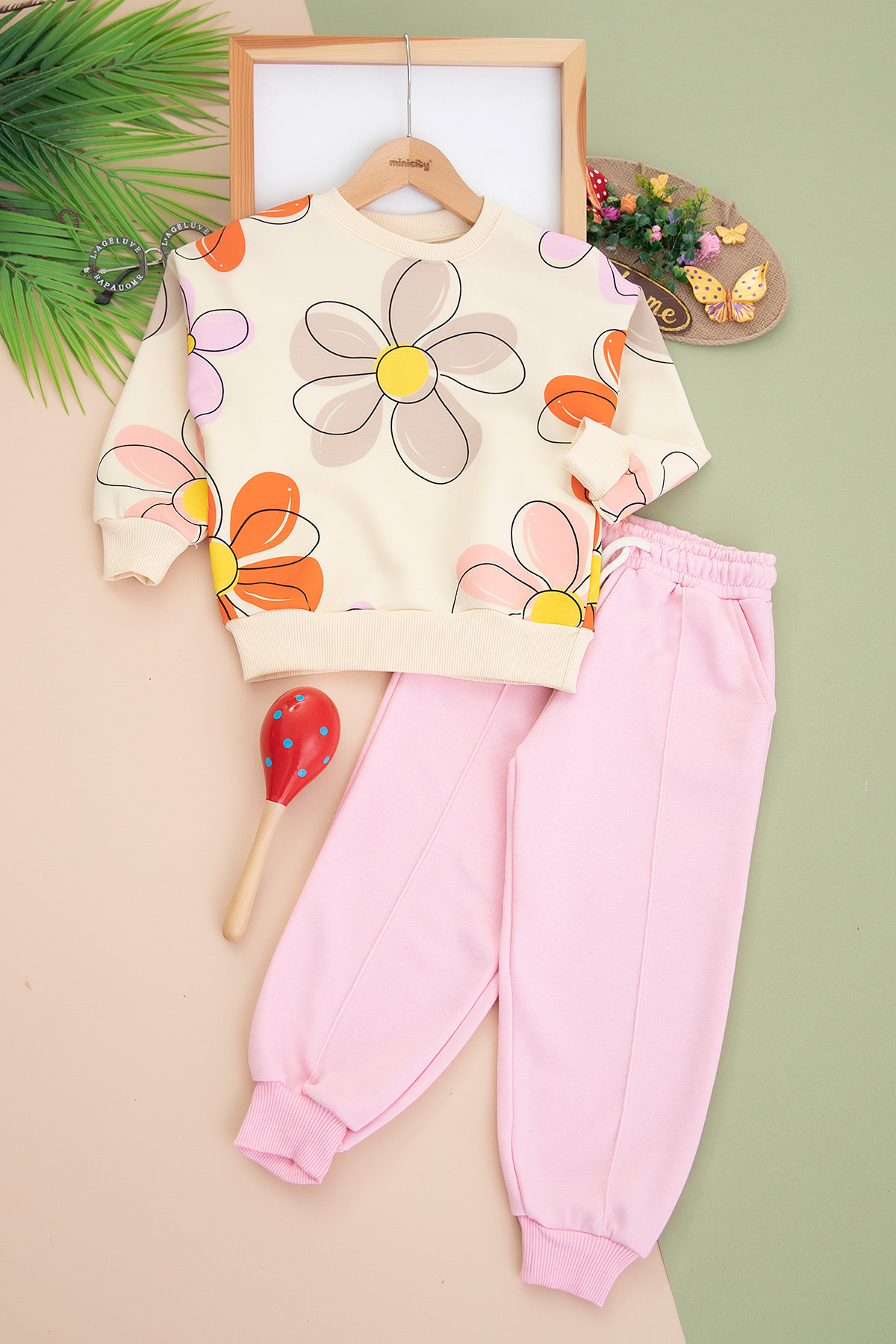 Kız Çocuk Papatya Baskılı Çımalı Alt Üçip Takım (4-9 Yaş)