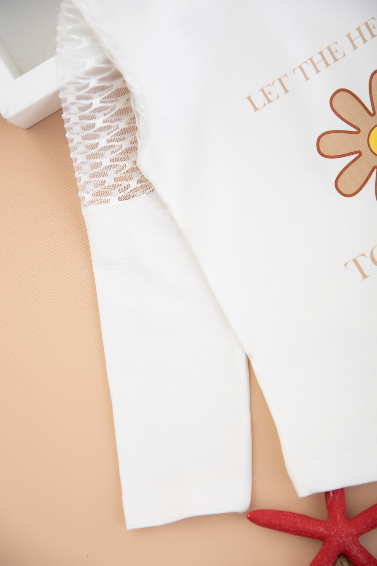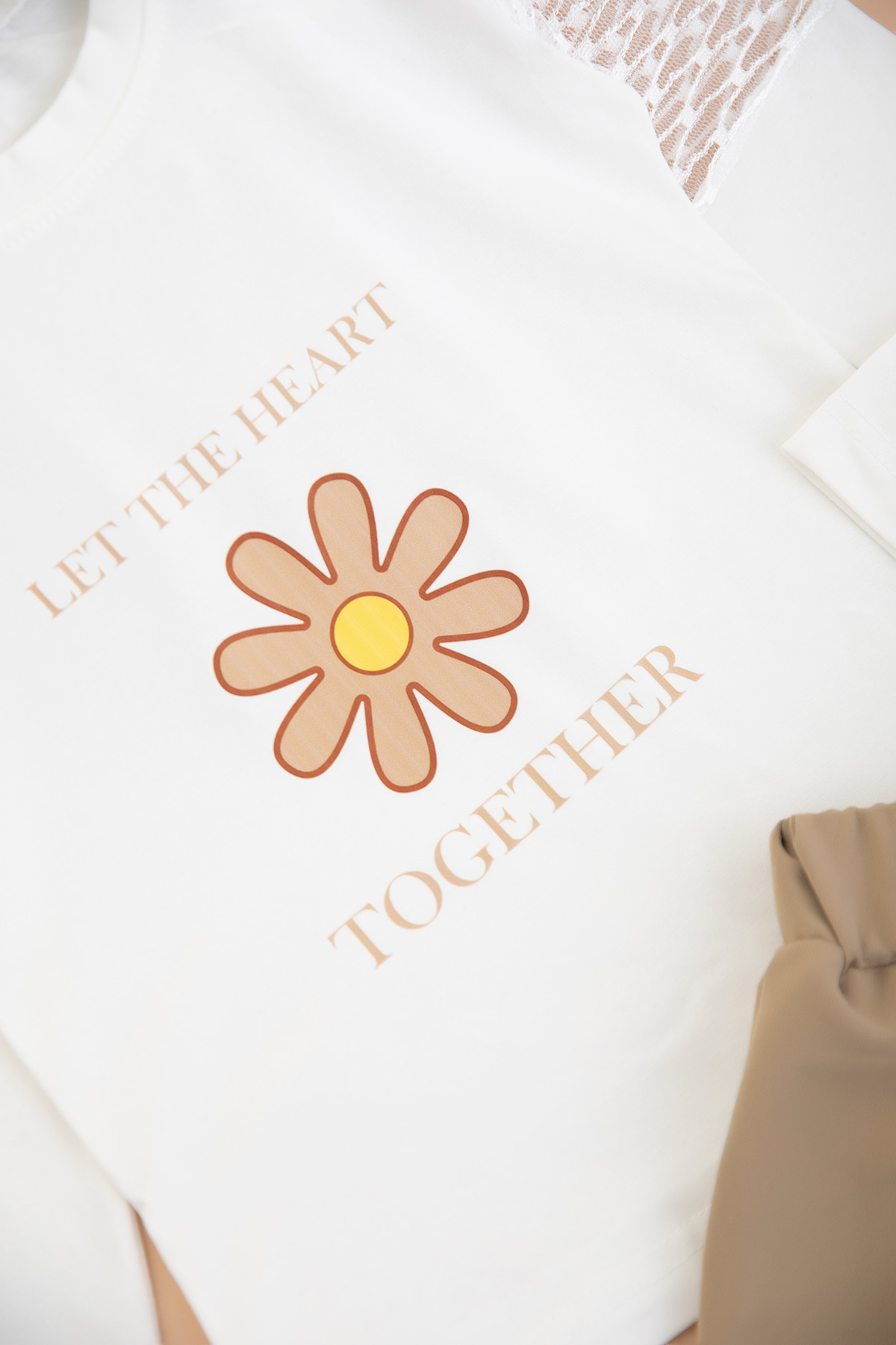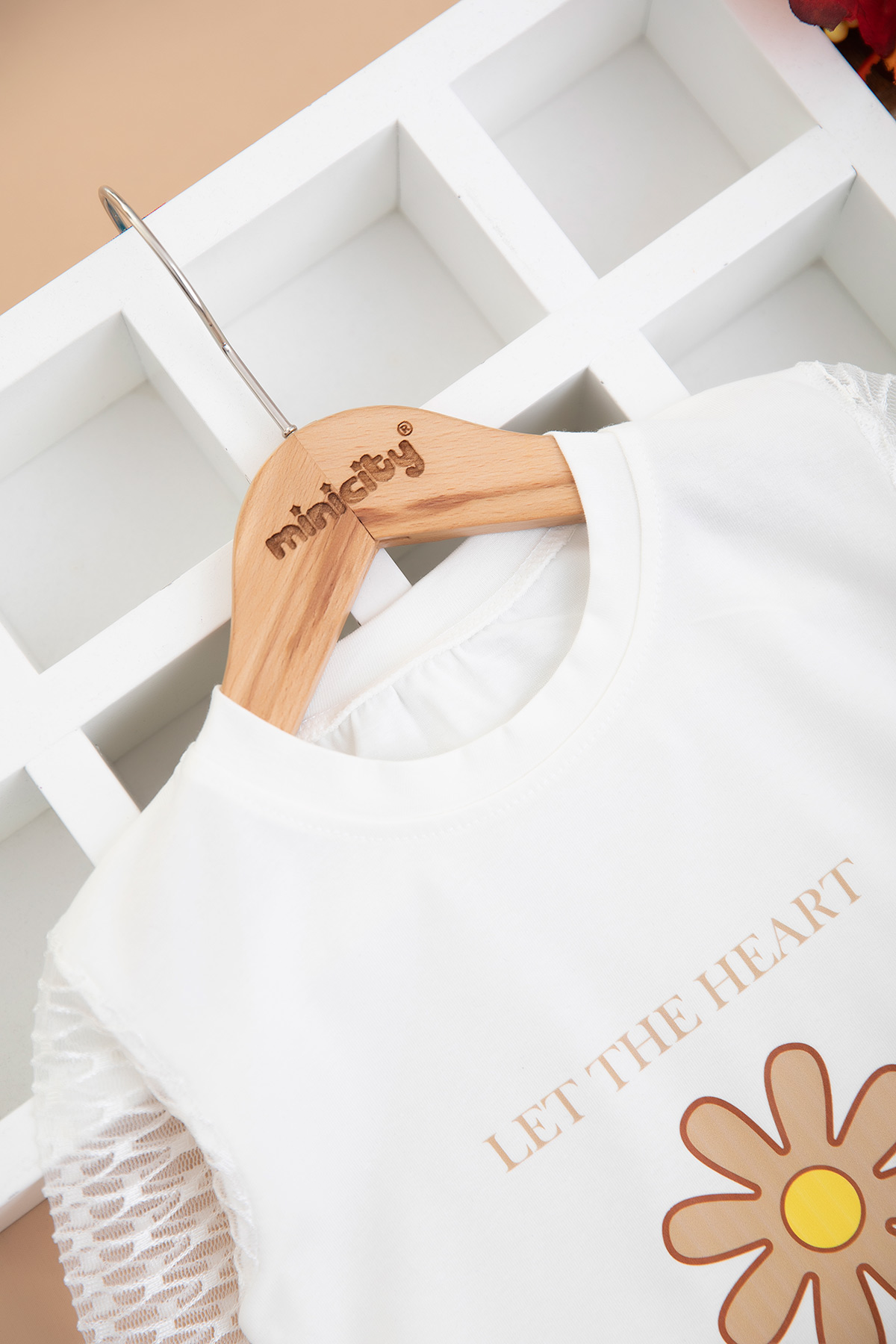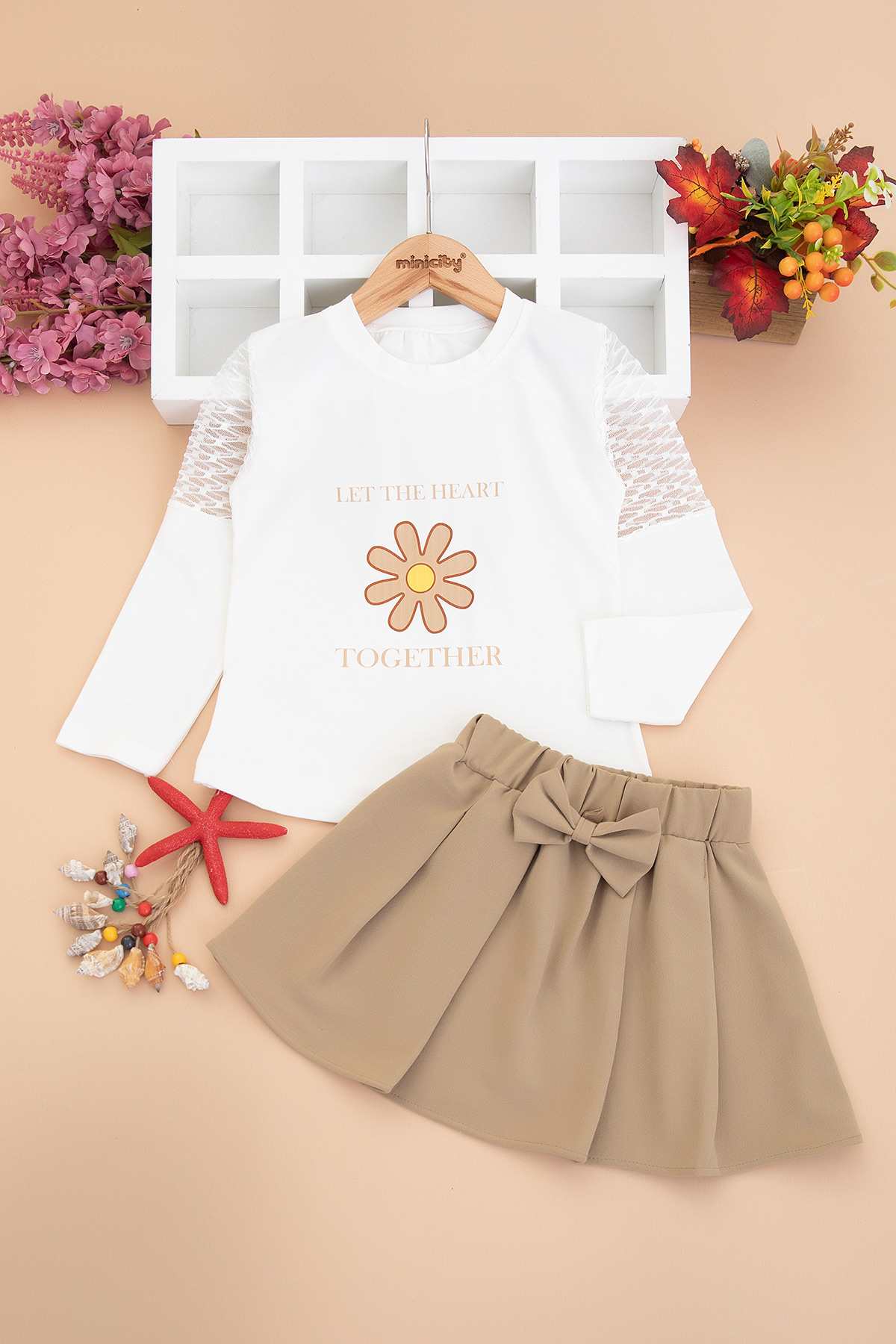 Kız Çocuk Papatya Baskılı Etekli Takım (3-8 Yaş)