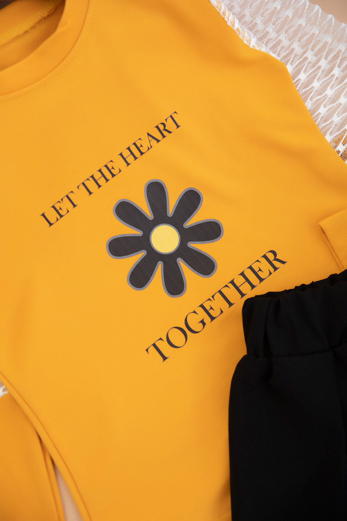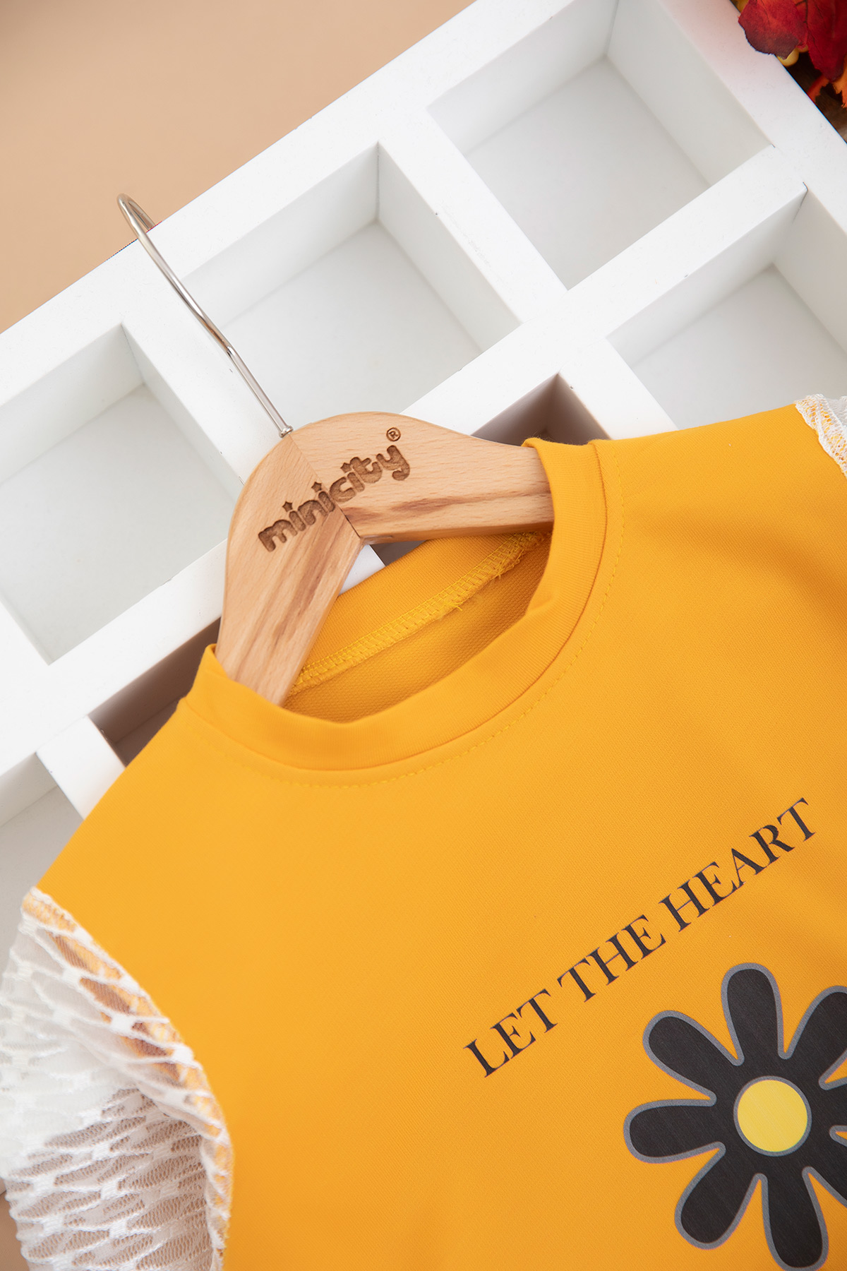 Kız Çocuk Papatya Baskılı Etekli Takım (3-8 Yaş)