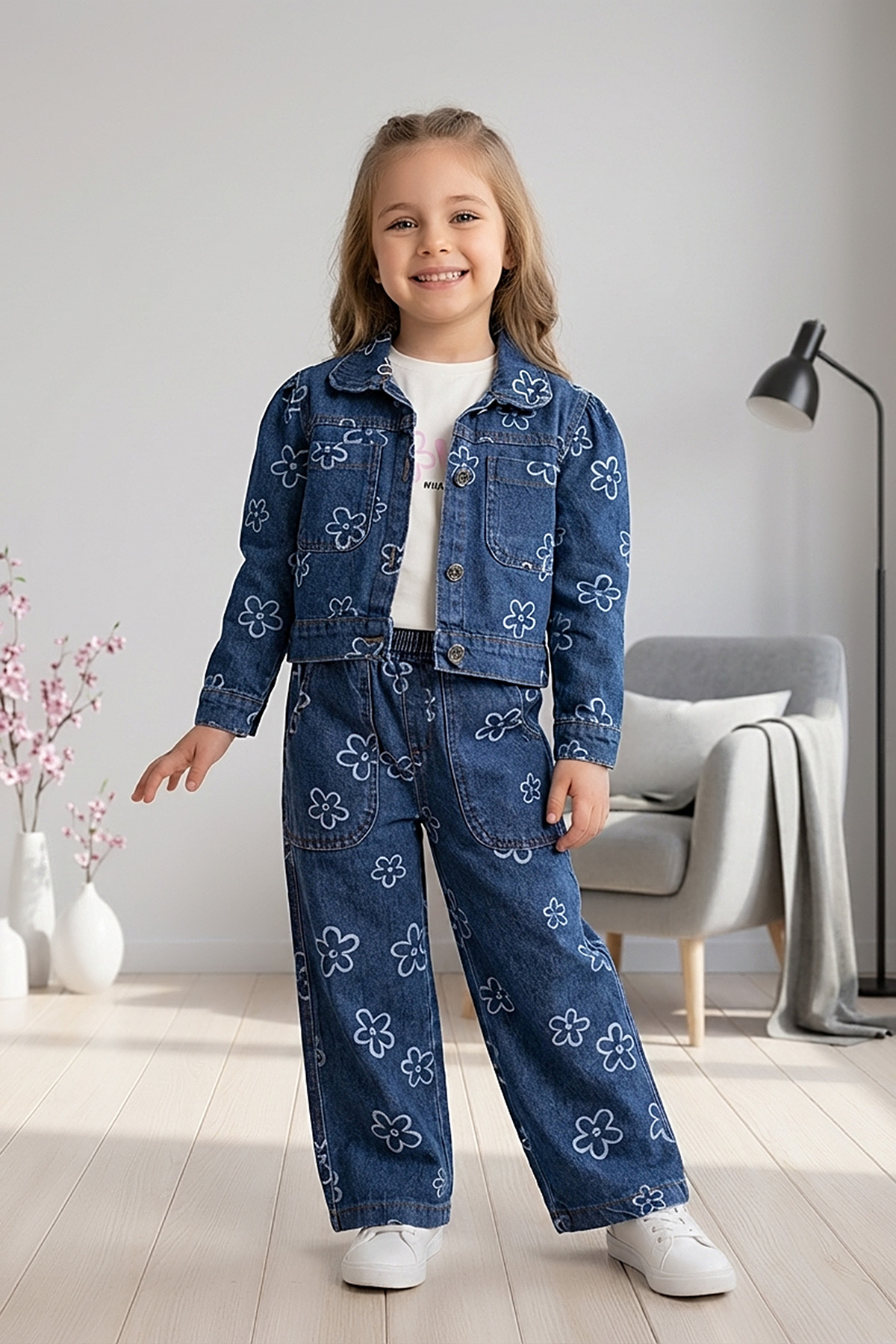 Kız Çocuk Papatya Baskılı Kot Takım - 1734 (3-6 Yaş)
