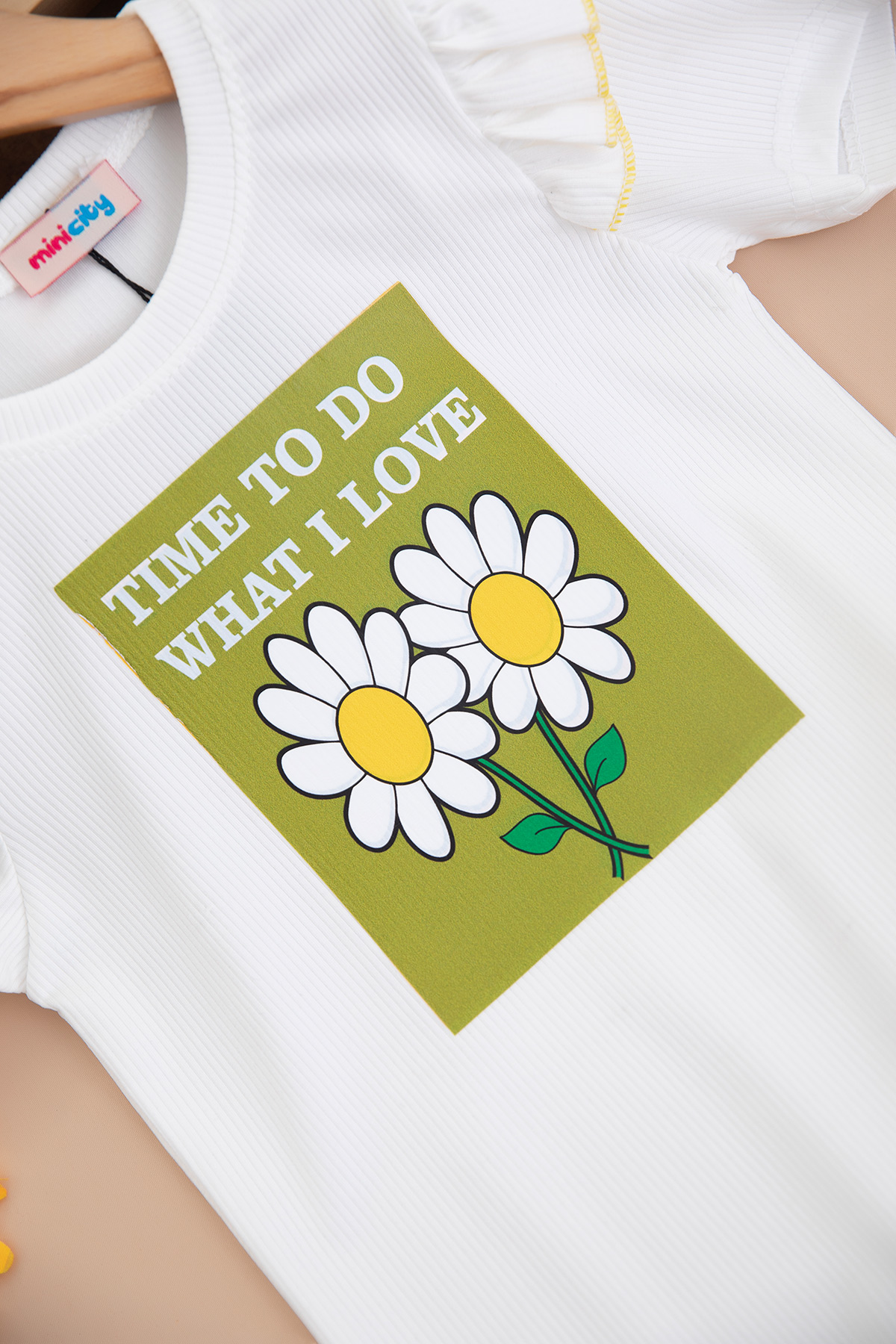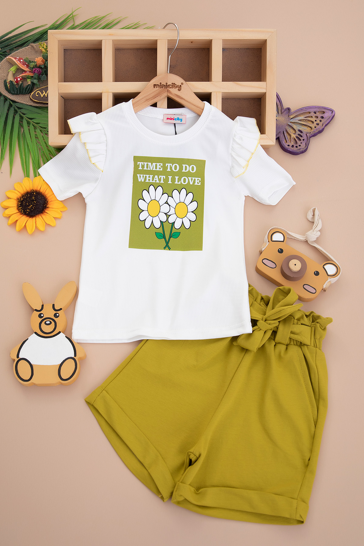 Kız Çocuk Papatya Baskılı Şort Takım - 31019 (3-7 Yaş)