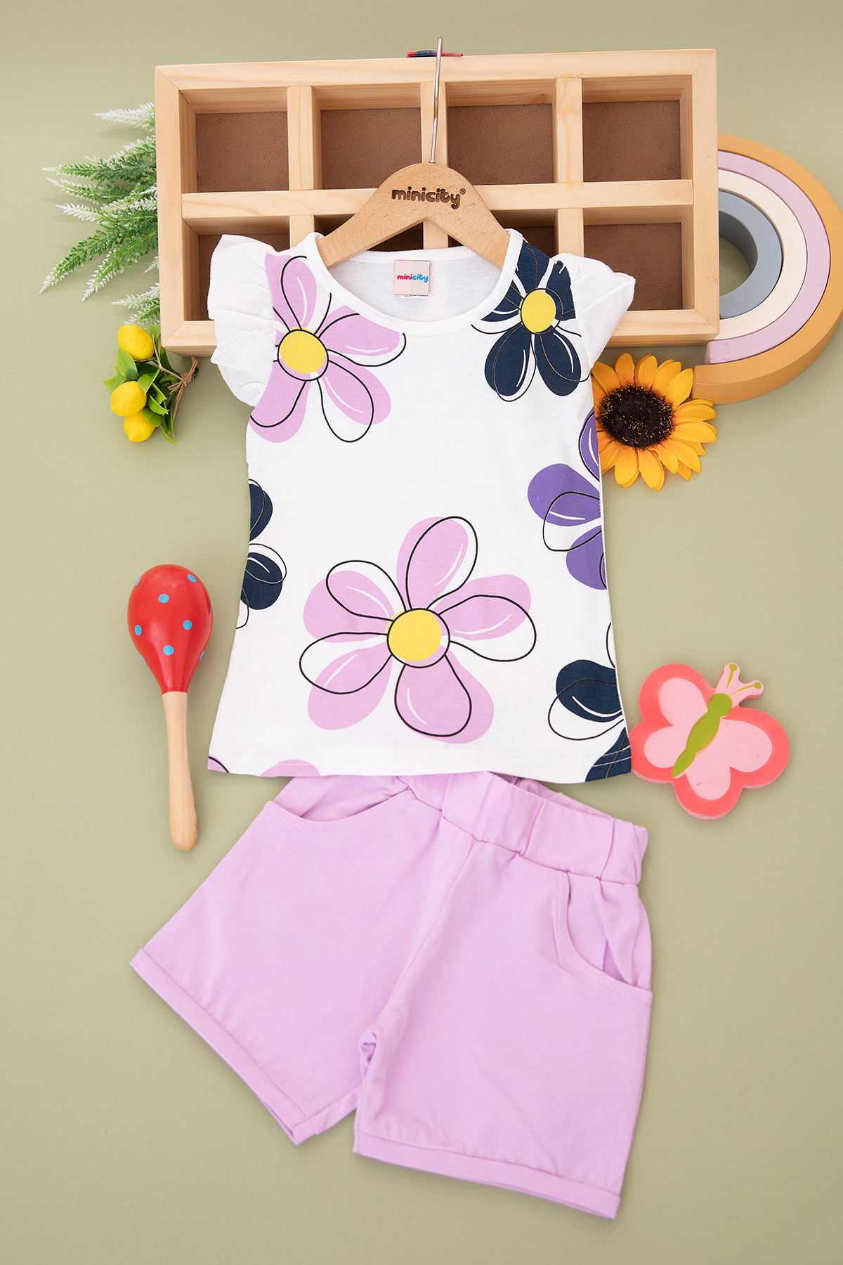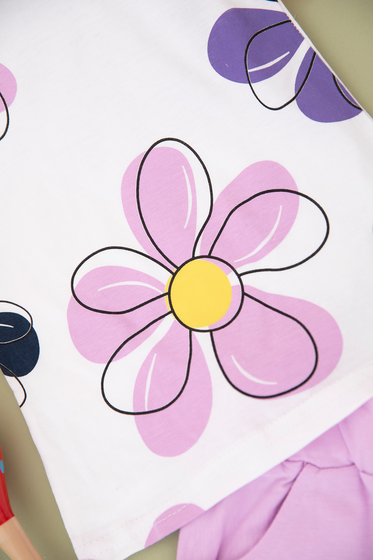 Kız Çocuk Papatya Baskılı Şortlu Takım (2-8 Yaş)