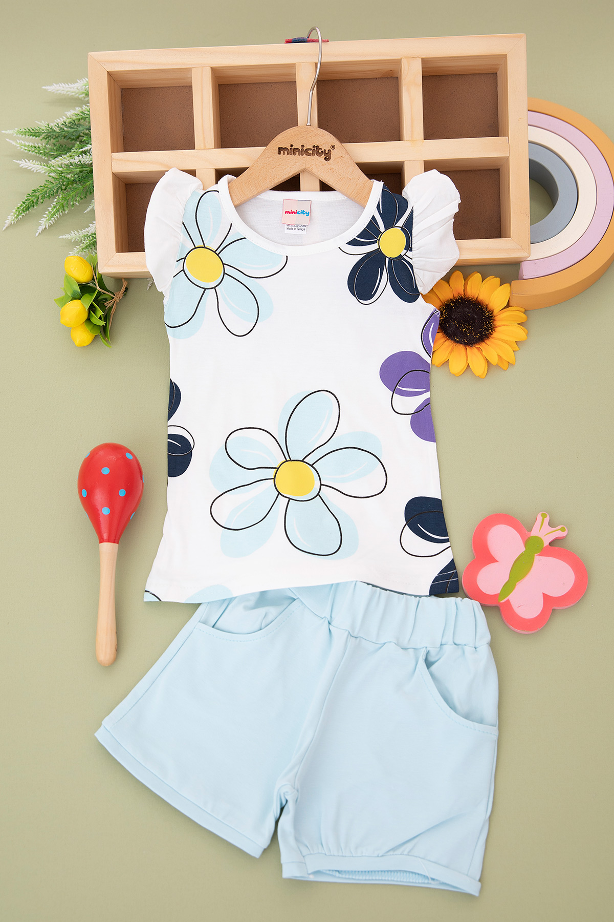 Kız Çocuk Papatya Baskılı Şortlu Takım (2-8 Yaş)