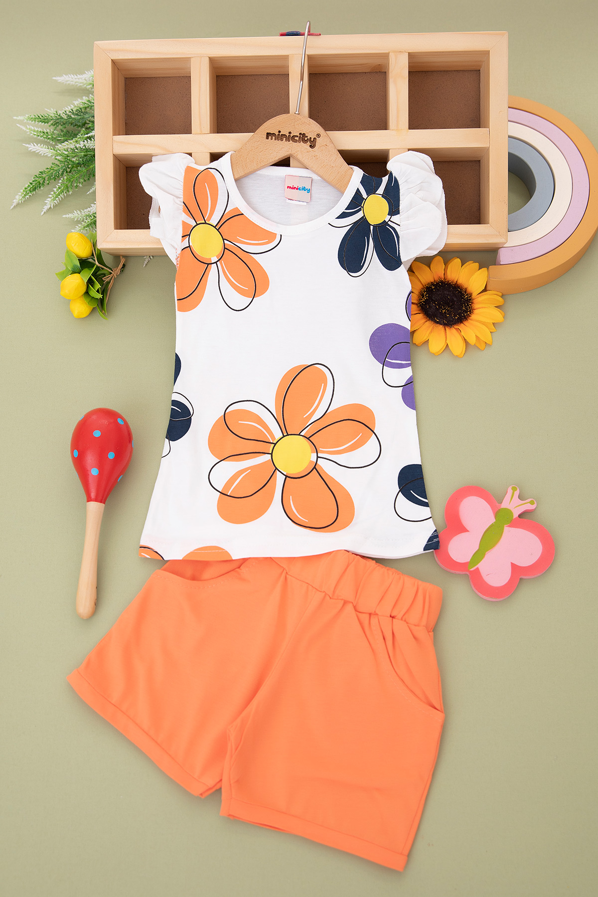 Kız Çocuk Papatya Baskılı Şortlu Takım (2-8 Yaş)