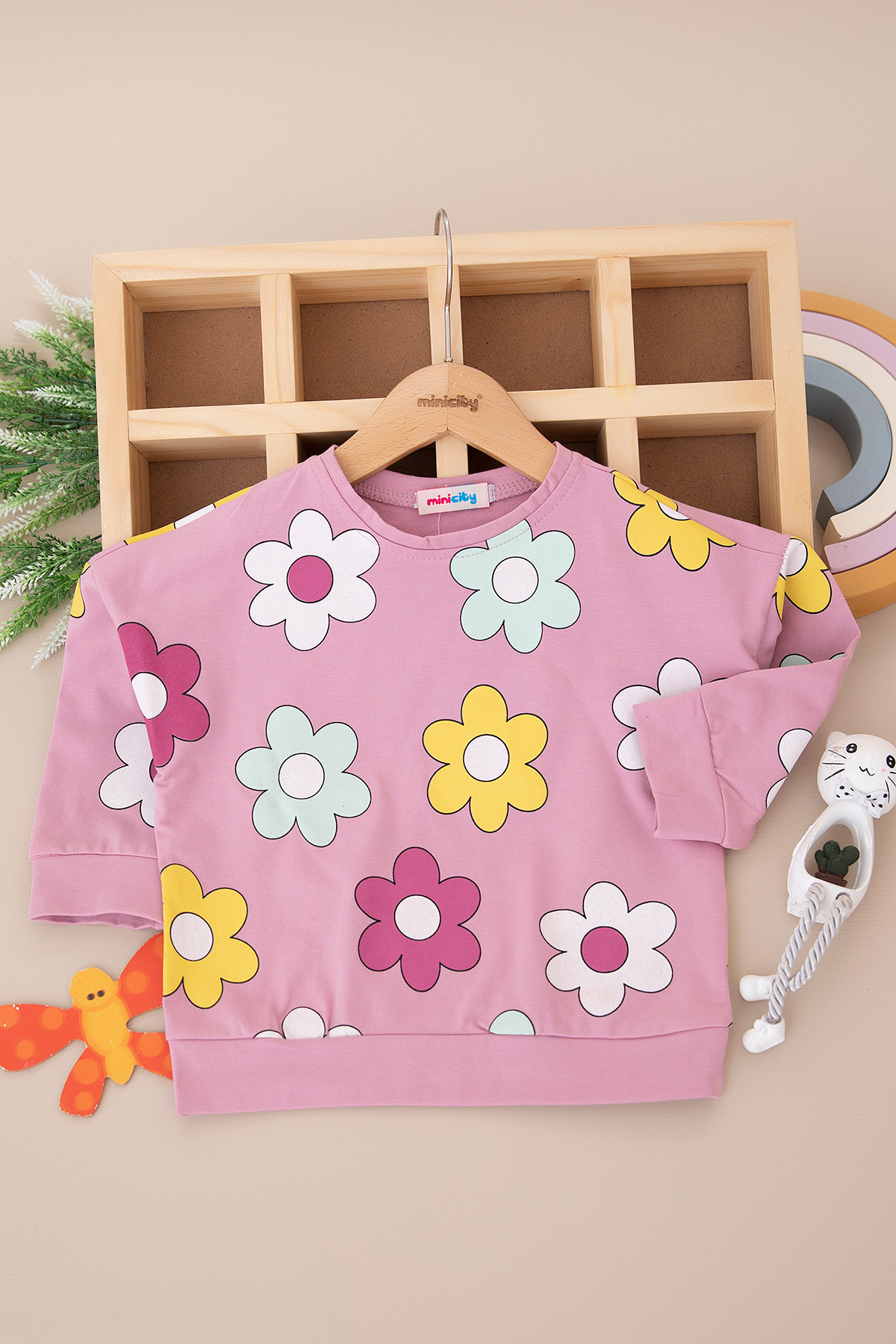 Kız Çocuk Papatya Baskılı Sweat - 11130 (1-4 Yaş)
