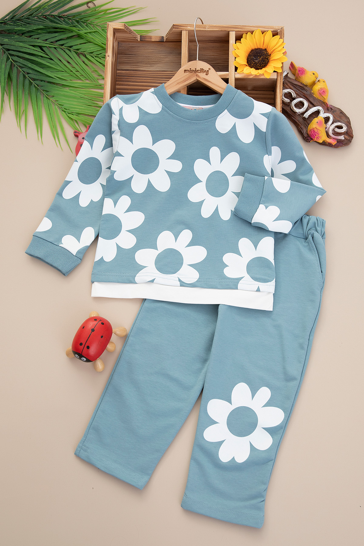 Kız Çocuk Papatya Baskılı Takım - 1009 (4-12 Yaş)