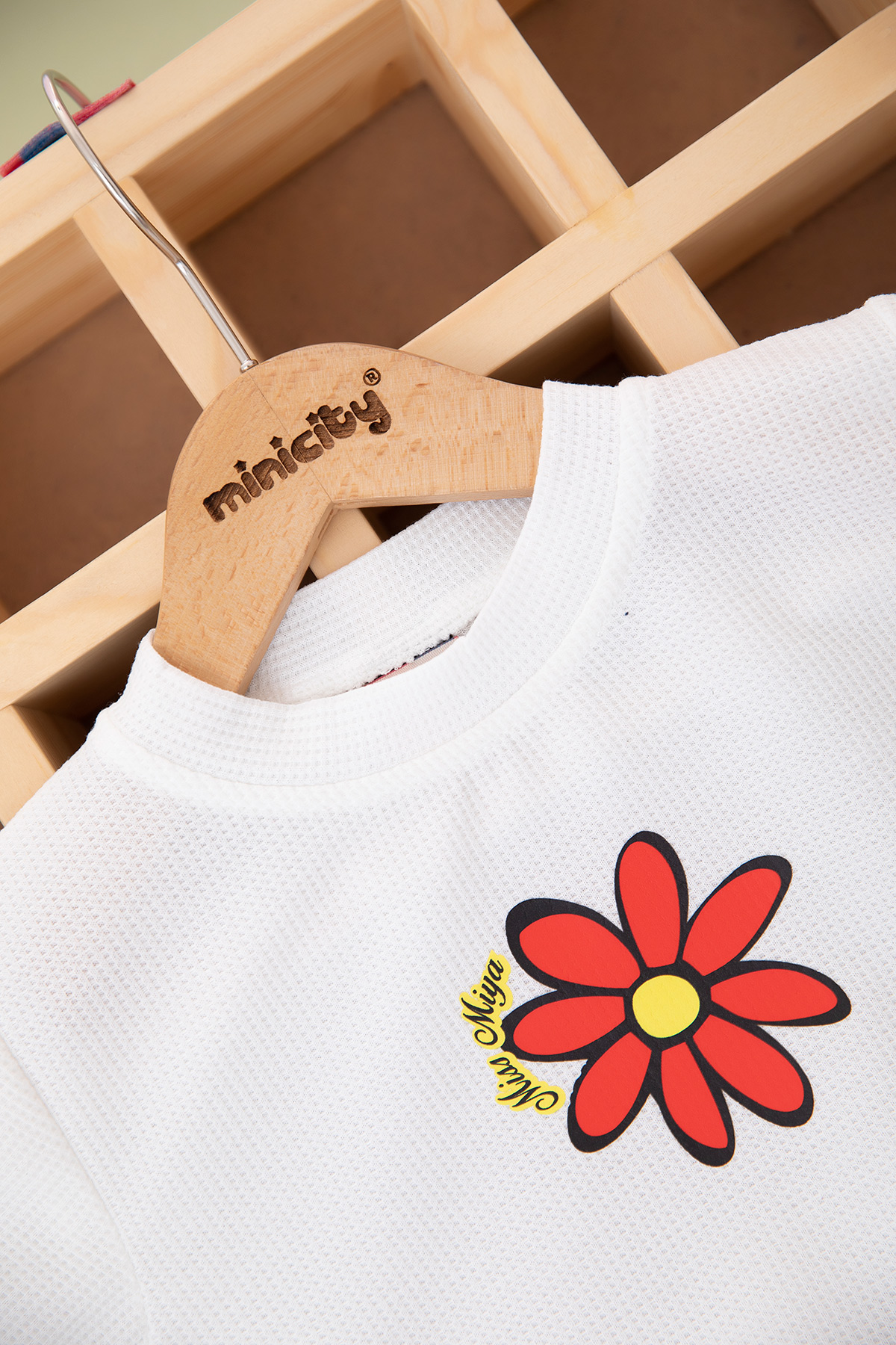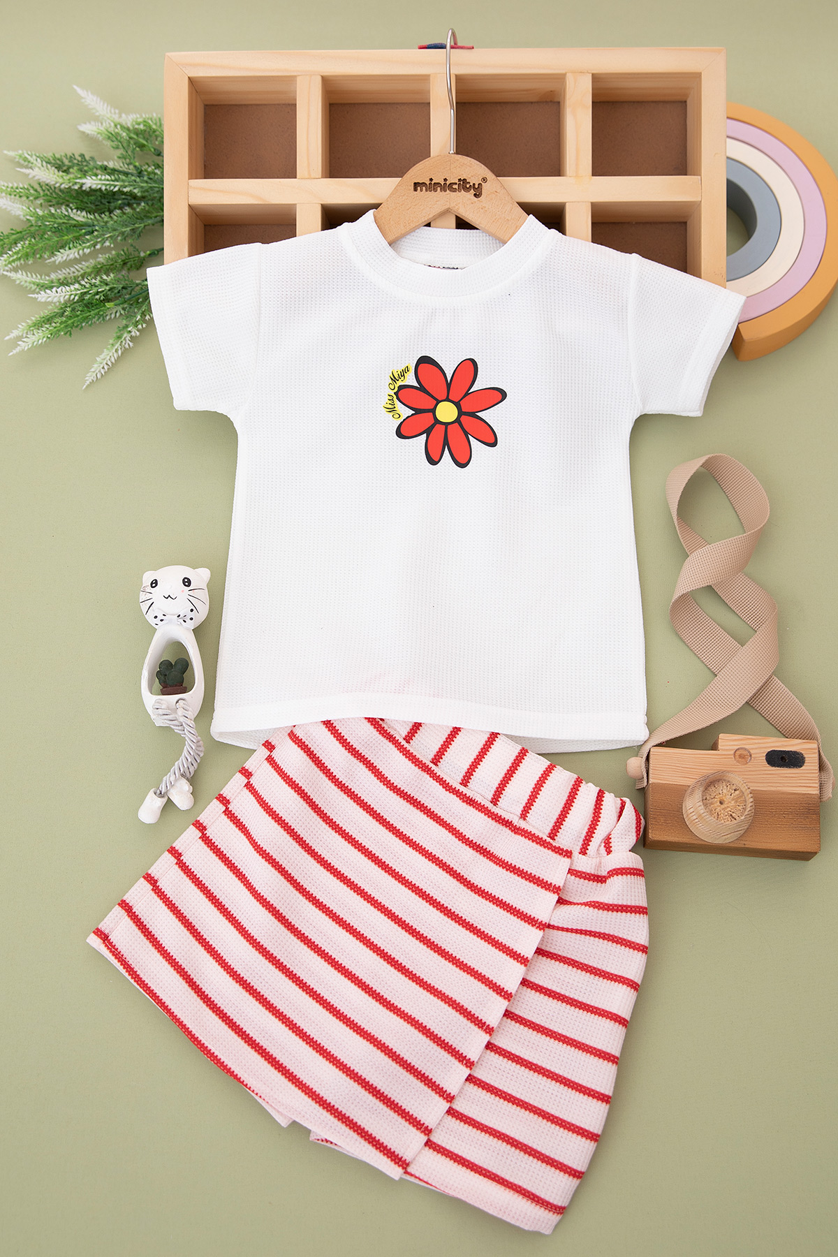 Kız Çocuk Papatya Çizgili Şort Etekli Takım - 2874 (3-7 Yaş)