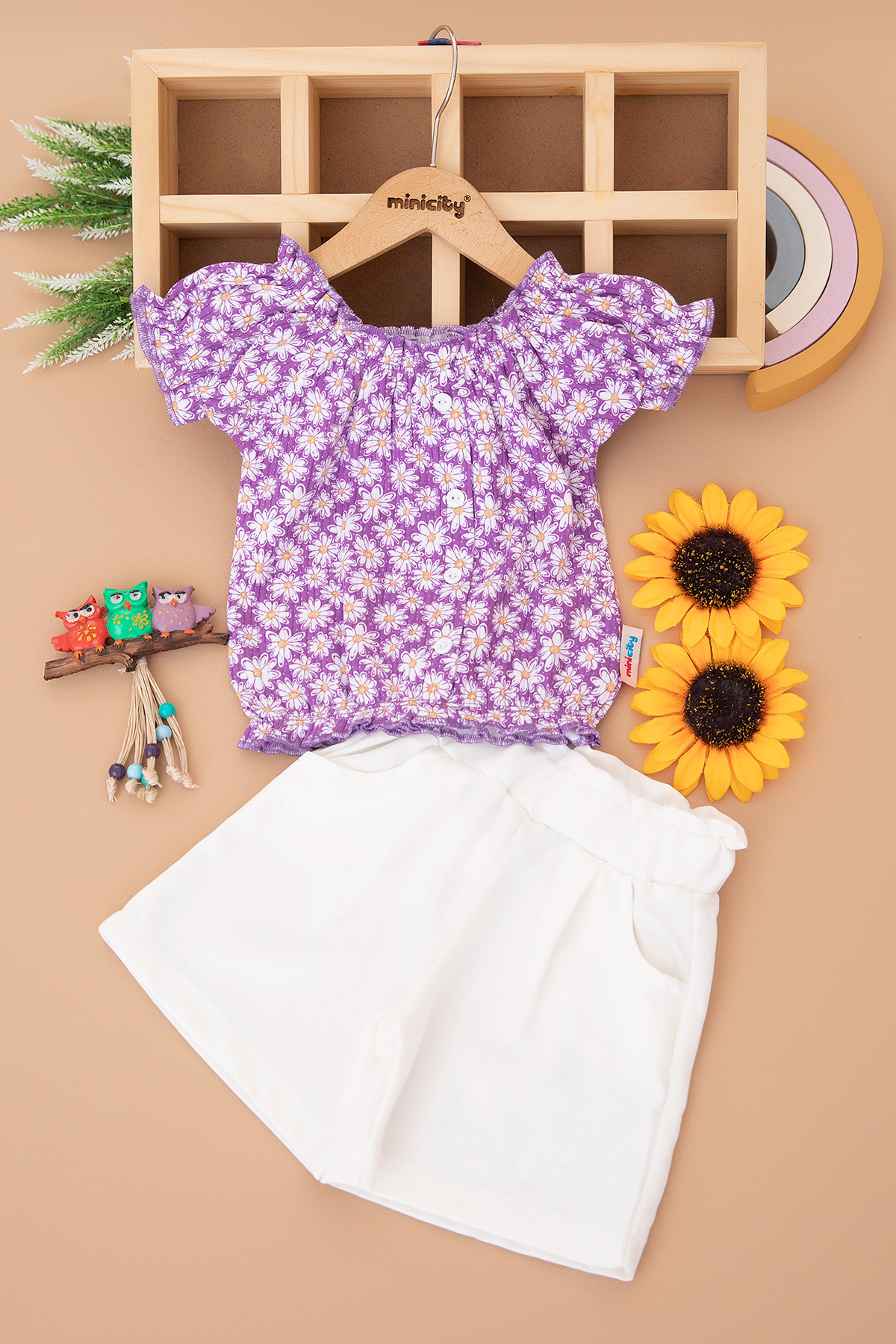 Kız Çocuk Papatya Desenli Şortlu Takım - 24337 (3-6 Yaş)