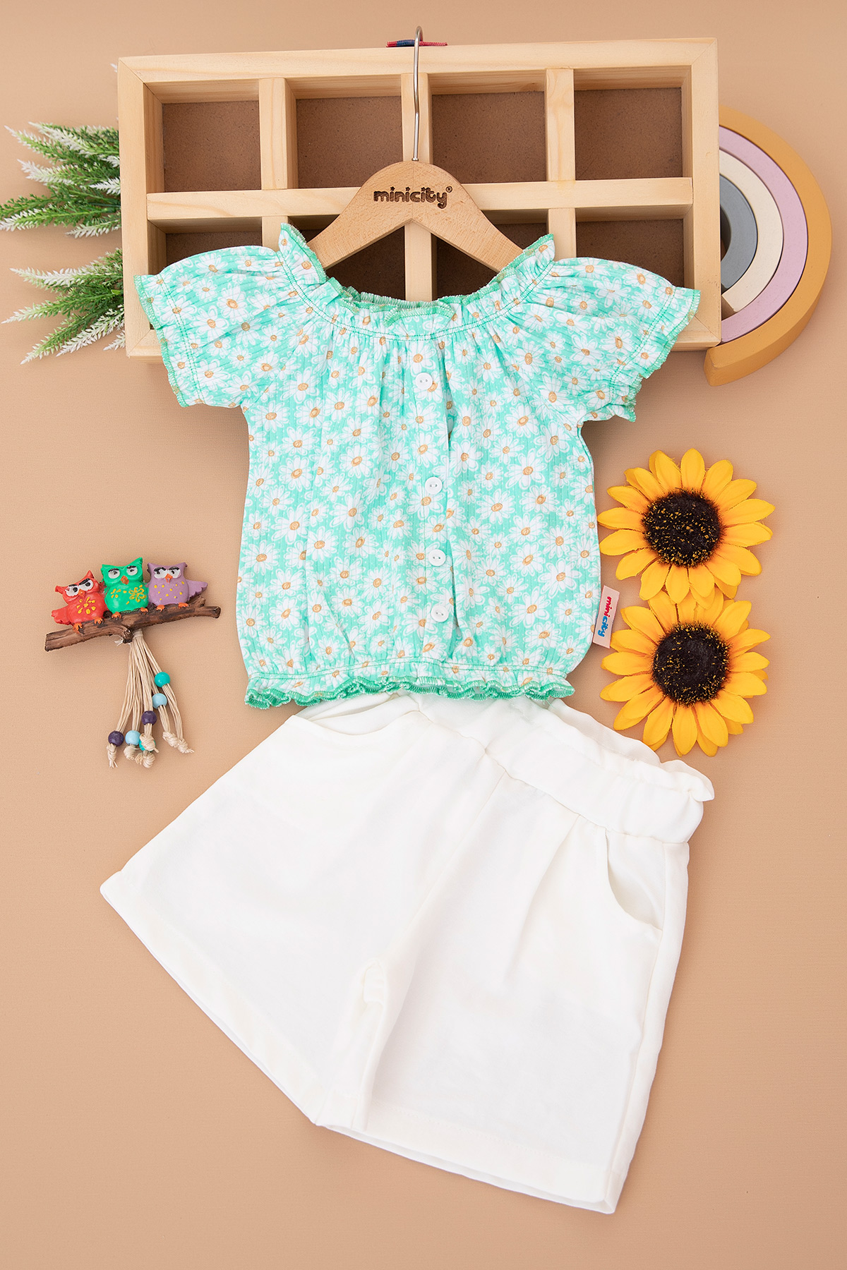 Kız Çocuk Papatya Desenli Şortlu Takım - 24337 (3-6 Yaş)
