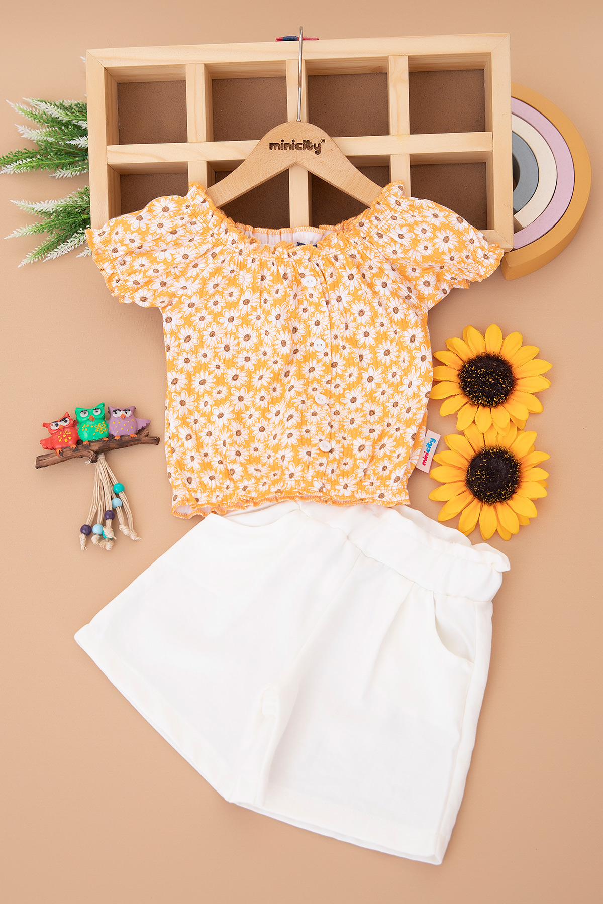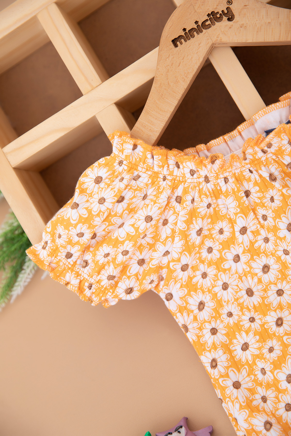 Kız Çocuk Papatya Desenli Şortlu Takım - 24337 (3-6 Yaş)